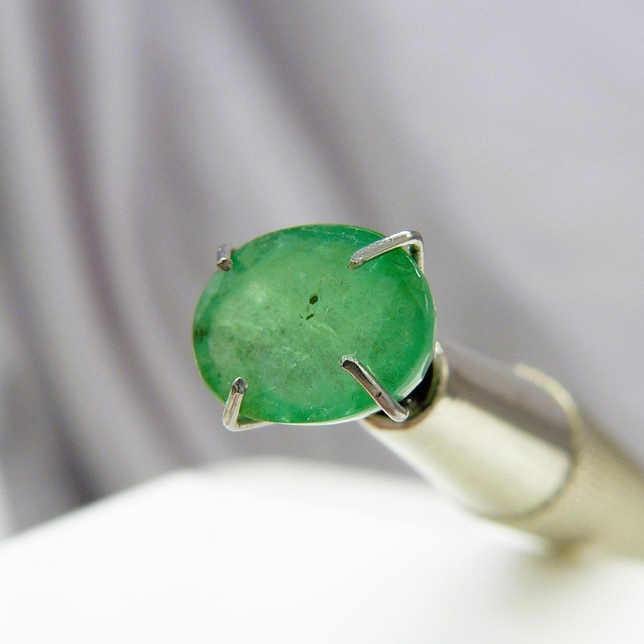 Yksi, soikea leikattu löysä smaragdi.