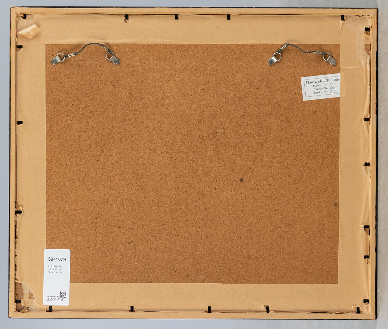 A. R. Penck (1939-2017), Nimetön, akvarelli kaksivärinen, 1987, signeerattu lyijykynällä oikeassa alakulmassa, päivätty kääntöpuolelle ja kaiverrettu '2/87 - 3/5', luultavasti 5 akvarellin sarjasta, n. 31 x 40,8 cm, kehystetty passepartoutin ja lasin takana, kehyksellä n. 49 x 58 cm