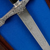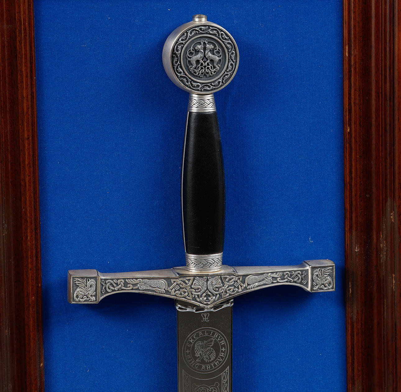 Asennettu liitutaululle. Miekan pituus on noin 119 cm. Maalauksen mitat n. 133 x 36 cm.