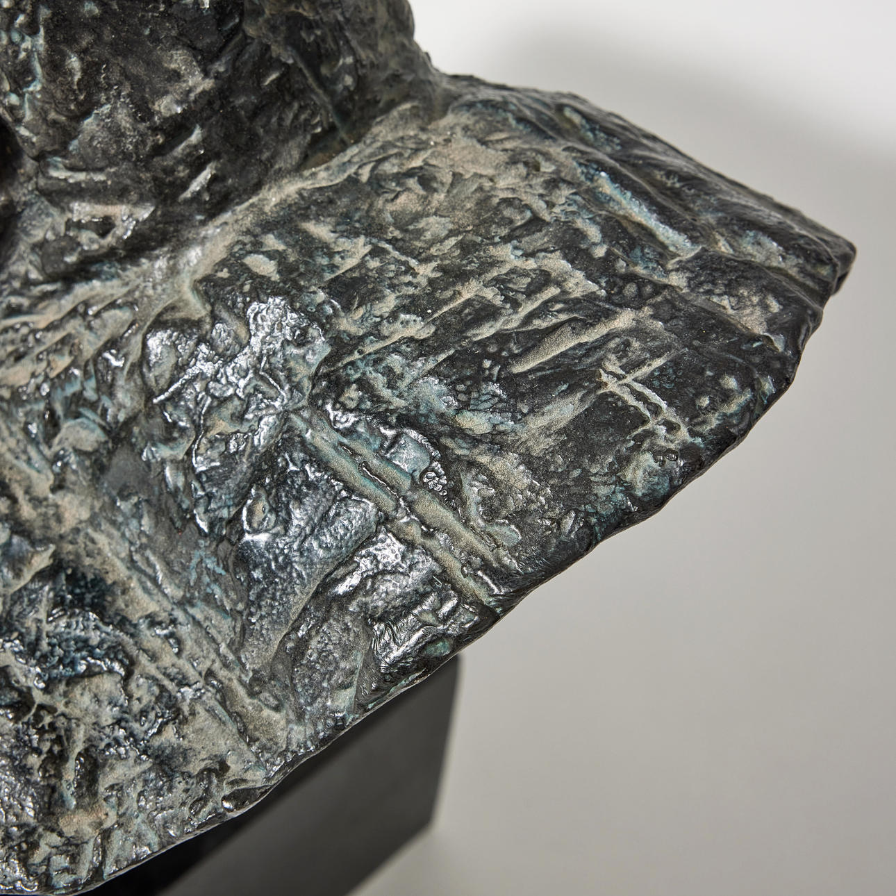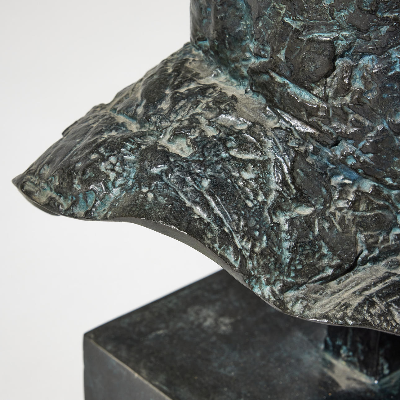 Pronssi, korkeus sokkelin 68 cm, leveys 54 cm, syvyys 30 cm. Signerad Liss ER, numeroitu 3/3, Valettu leimasin Herman Bergman.1970.