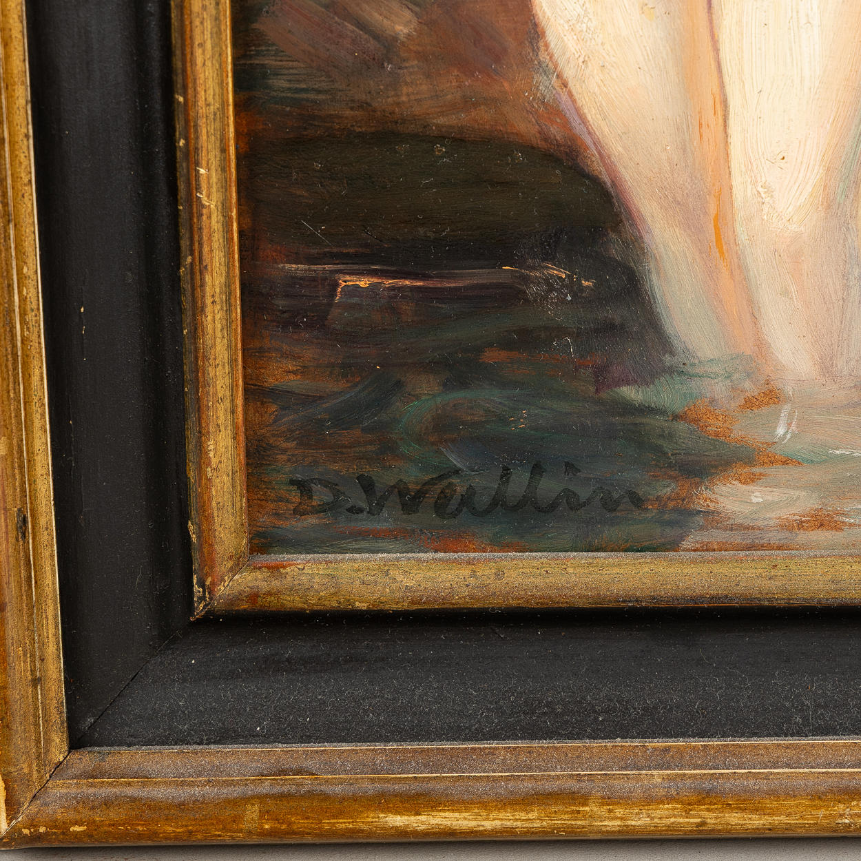 DAVID WALLIN. Nainen uimapuvussa, öljy paneelilla.