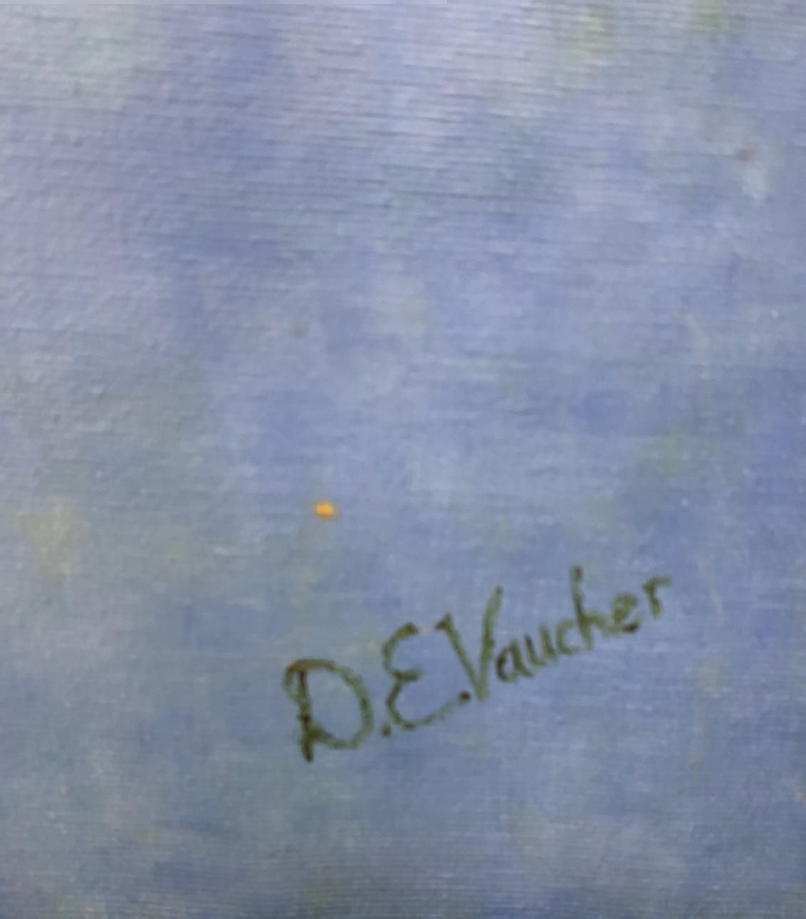Kehystetty akryyli kankaalle, auringonkukkamaalaus, signeerattu D. E. Vaucher, kehystetty 104 x 72cm.