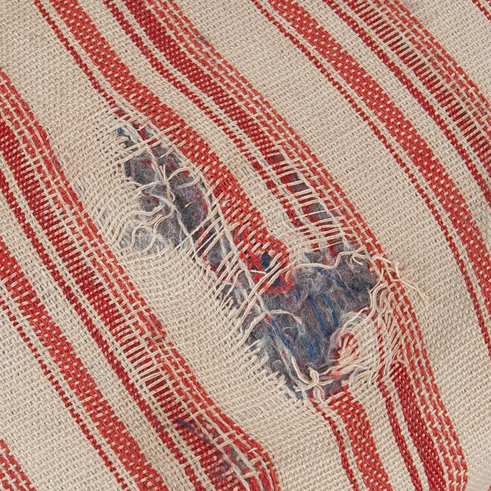 Verhoilu, jossa on kulumista ja reikiä, hoitotyö vaaditaan. Selkänoja hieman löysä.