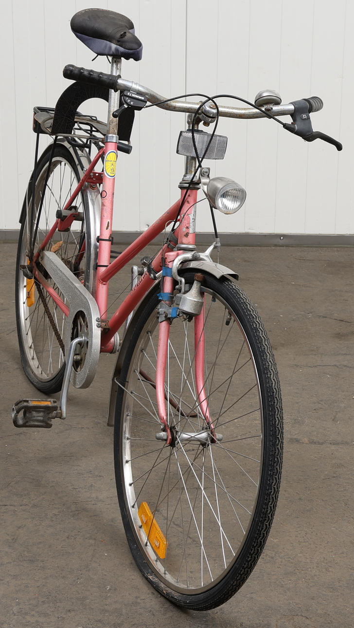 Lukko takarenkaassa, avain puuttuu.