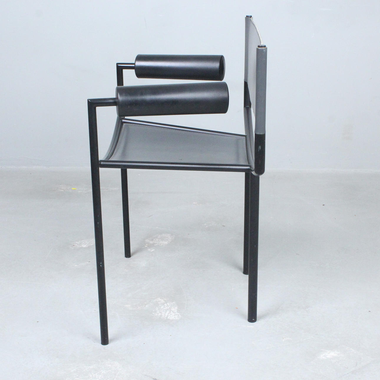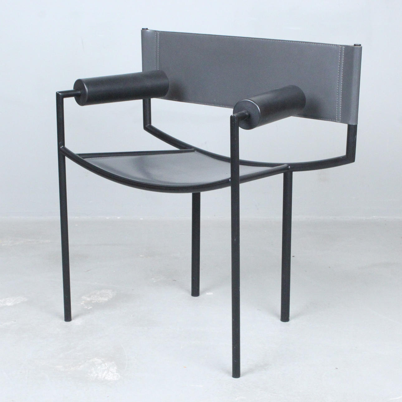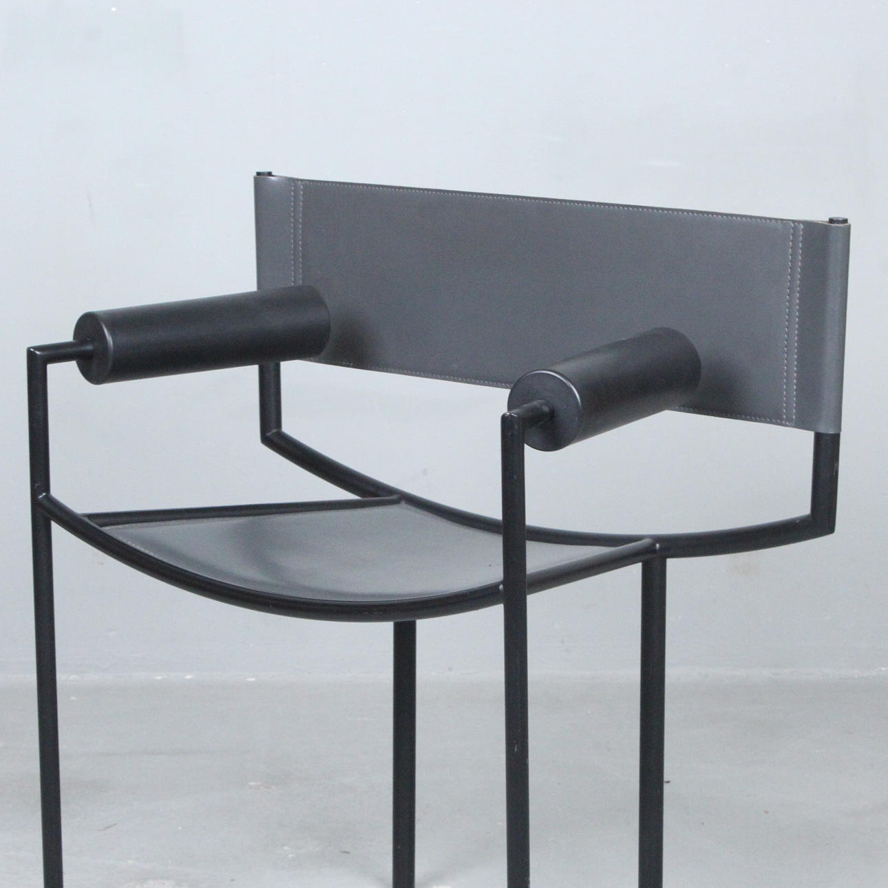 1980-luvun italialainen nojatuoli metallista ja nahasta