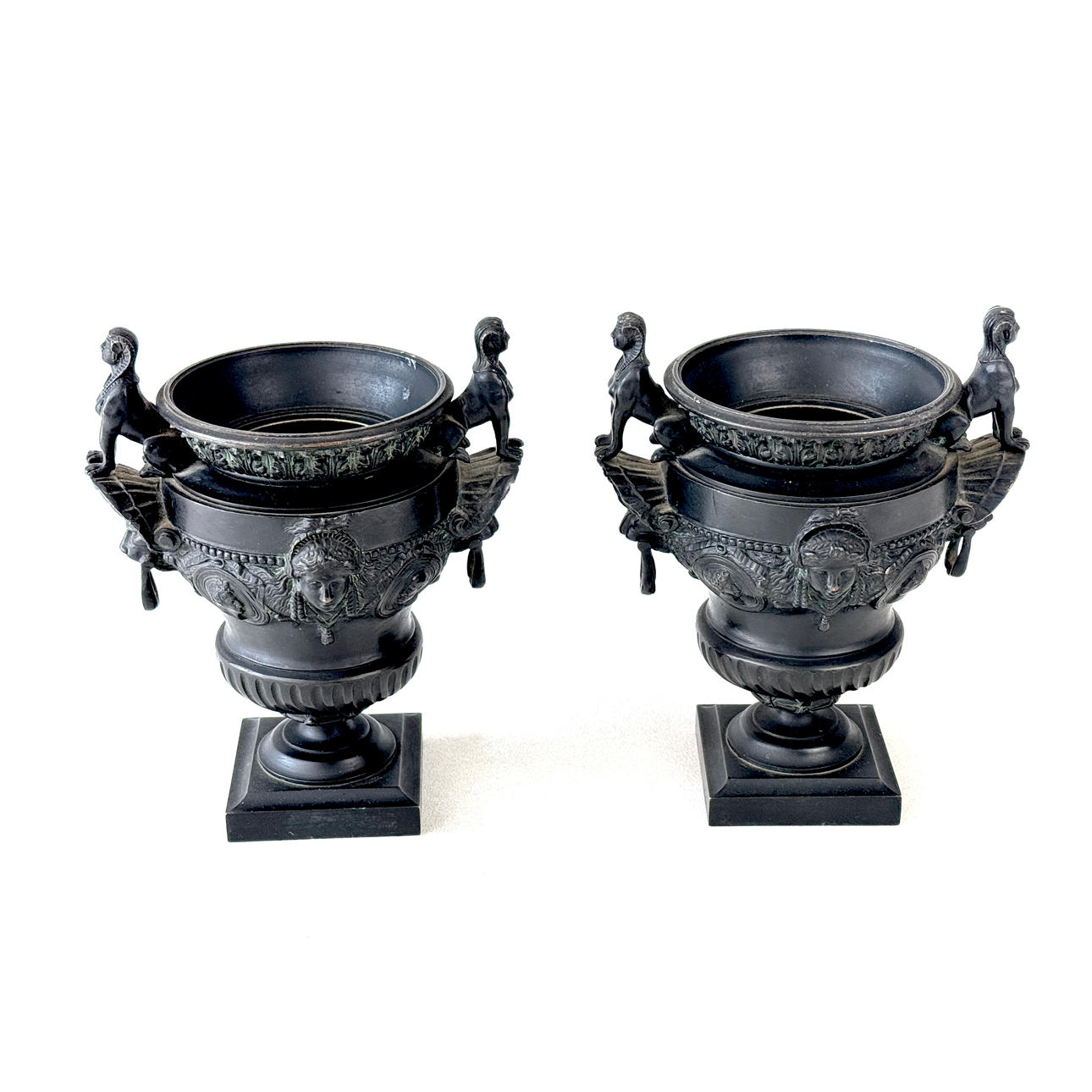 URNOR, ett par, klassiska pronssia, H 21cm.