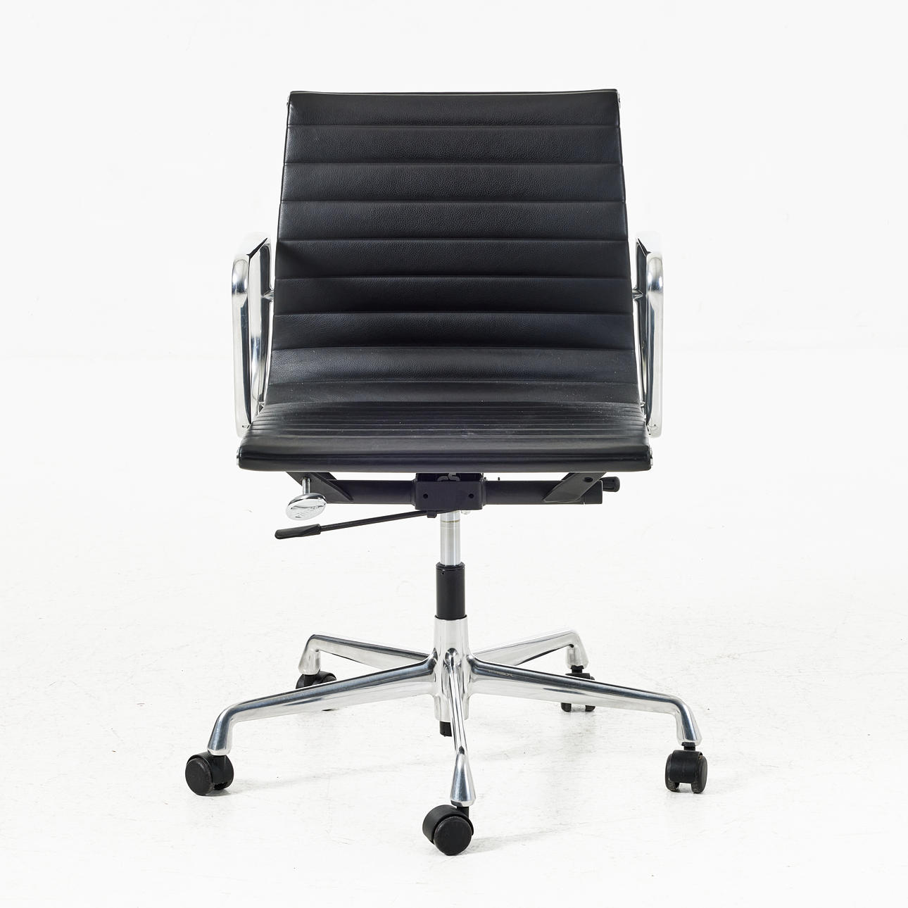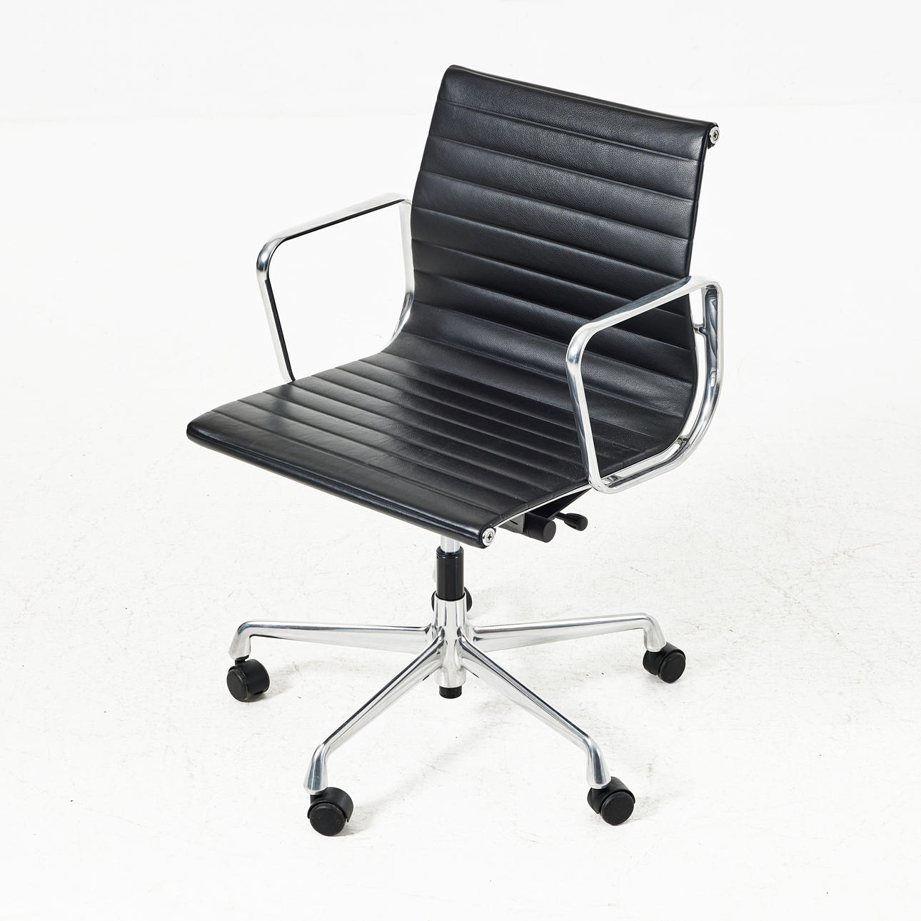 Kromattu alumiini, Vitra, 2000-luku, keinonahkaverhoilu, pyörillä, etikettimerattu, malli suunniteltu 1958. Säädettävä korkeus.