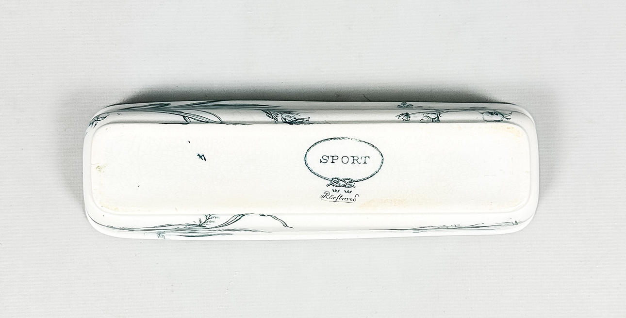 Pesuallas, pituus noin 45 cm, korkeus noin 12 cm Saippualaatikko 10,5 x 13,5 cm Hammasharjarasia lukolla, 23 x 8 cm.