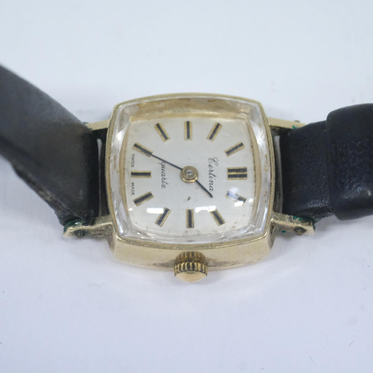 Certina naisten rannekello 14 k, halkaisija 1,6cm, lenkki nahkaa.