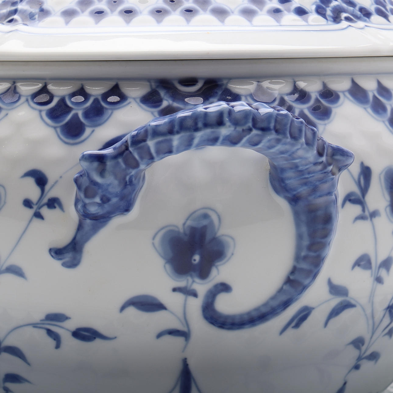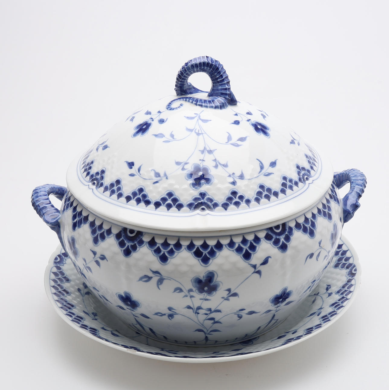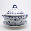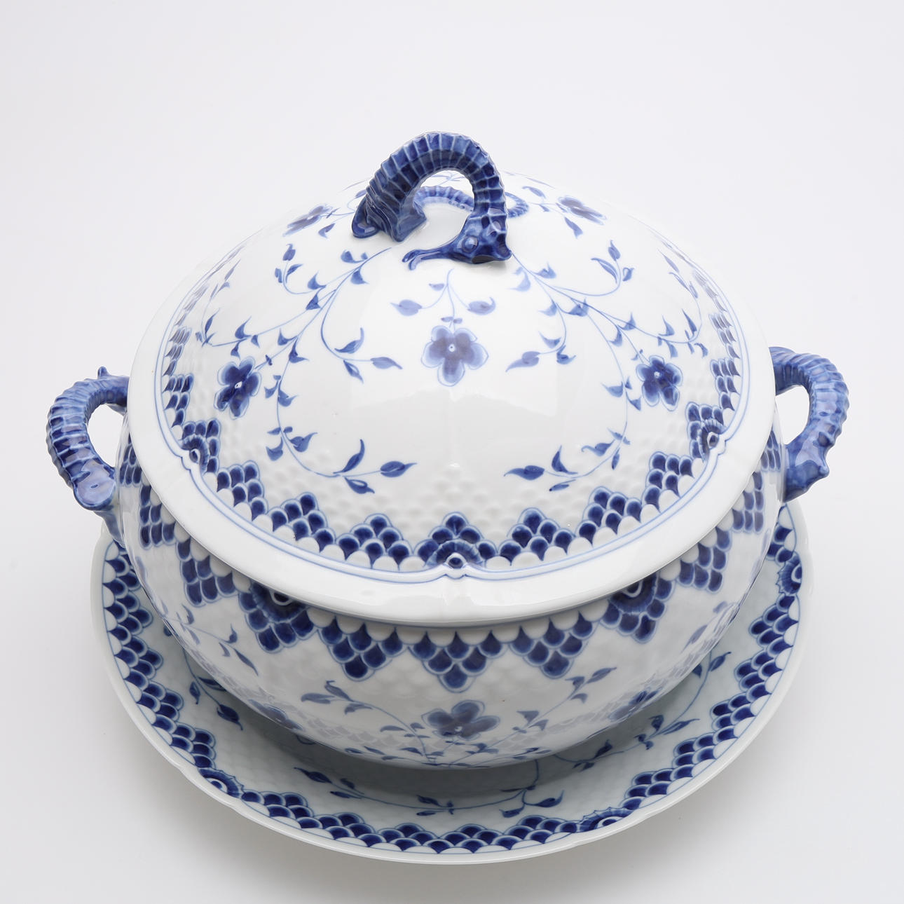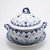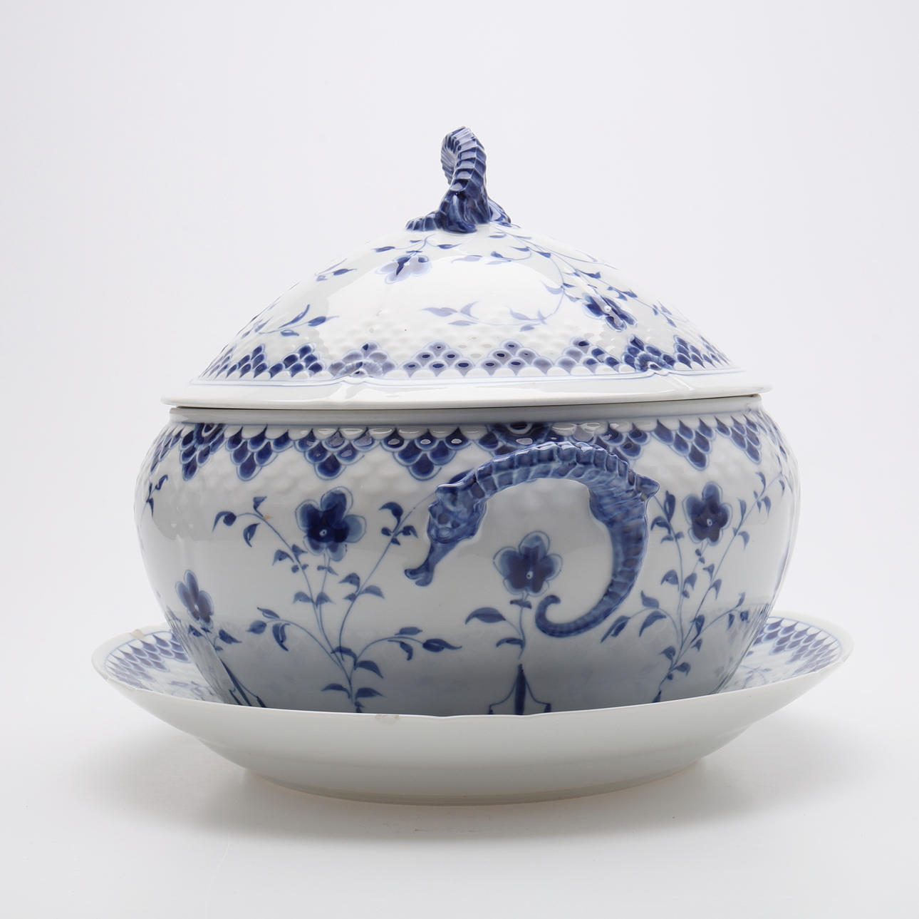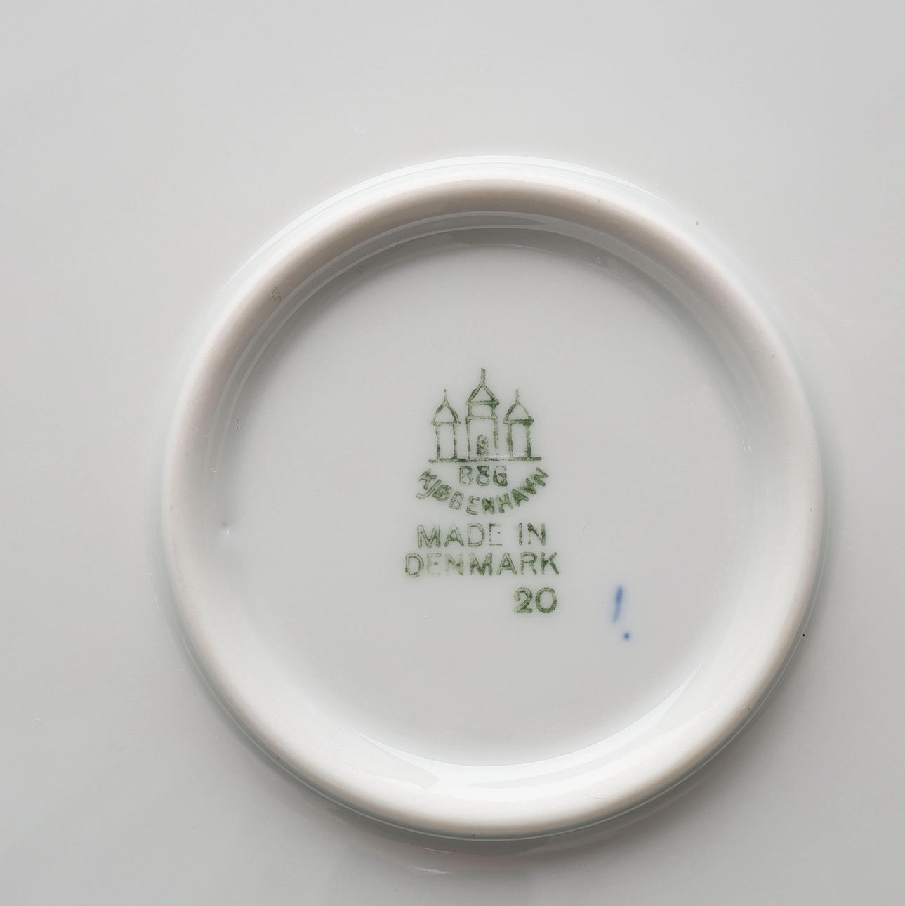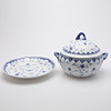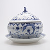 Posliini, korkeus n. 25 cm. Mukana lautanen isommilla lovilla, halkaisija n. 32 cm.
