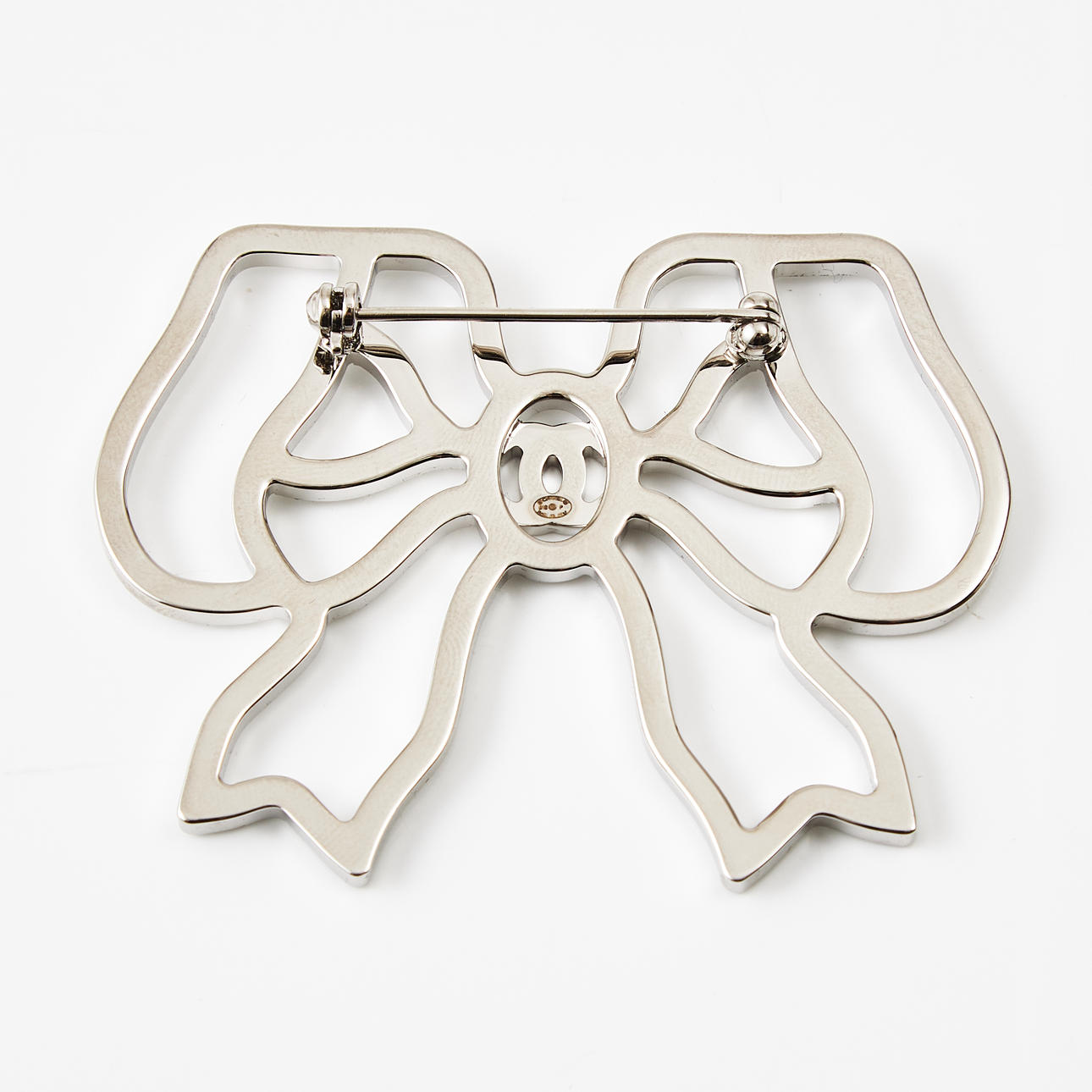 Rusetti valkoista metallia vaaleilla kivillä, keskellä CC, merkintä ”Chanel made in Italy”, mitat n. 6x65cm.