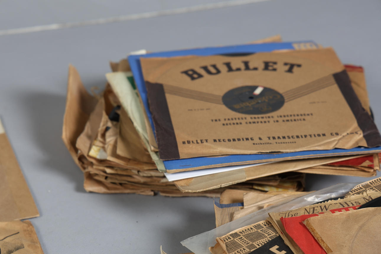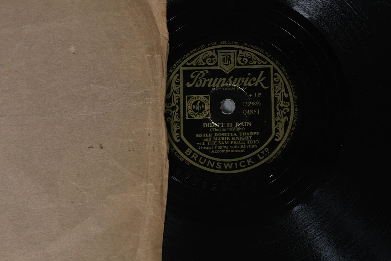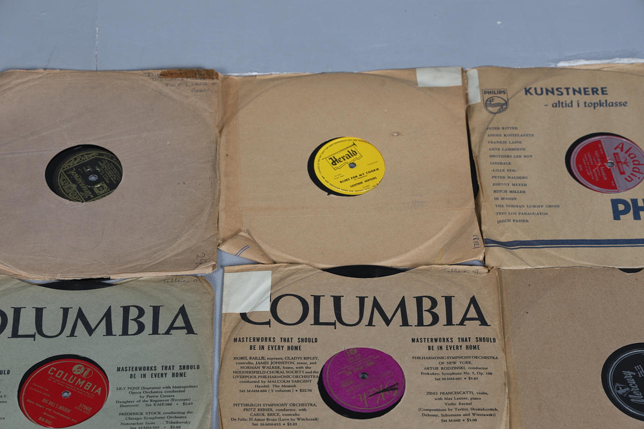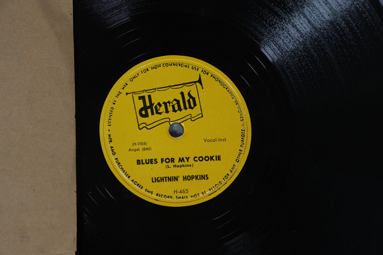 Hyvä kokoelma Shellac 78's ja 10" vinyylejä, joihin kuuluvat ”Lightnin'" Hopkins - Fast-Mail Rambler/Thinkin' And Worryin' (204), Lightnin' Hopkins - Blues For My Cookie/Had A Gal Called Sal (H-465), Sister Rosetta Tharpe And Marie Knight/Sister Rosetta Tharpe - Didn't It Rain/Two Little Fishes And Five Loaves Of Bread (04851), Sonny Terry - huuliharppu- ja laulusoolot (FP 35), Ethel Waters - Sinisen sävyt (RLP-1025), Kid Ory's Creole Jazz Band - 1953 (L.D.G. 093), Louis Armstrong - Soittaa Bluesia (AL 3501), Louis Armstrong ja hänen orkesterinsa - naurava Louis (DLP 1036), 'Fats' Waller - rytmi ja romanssi (DLP1056), 'Fats' Waller ja hänen rytminsä - 'Fats' Wallerin suosikit (DLP 1008), Jelly Roll Morton ja hänen Red Hot Peppers (DLP 1016), Lizzie Miles Sam DeKemelin kanssa - Lizzie Miles (SLPY 150), Bunk Johnson ja Yerba Buena Jazz Band - Spirituaalit ja jazz (LDG 110), Lionel Hampton ja hänen kaikki tähtensä - Hamp Pariisissa - osa 2 (EDL 87008), Lead Belly - Leadbelly Memorial Volume 3 (SLP 48), Leadbelly - Leadbelly - Leadbelly Memorial Volume 4 (SLP 51), Jimmy Yancey - pianosoolot (ALS 134), Blind Lemon Jefferson - Sokean Lemon Jeffersonin kansanblues (AL 3508), Jimmy And Ma - Yancey Special (LP130), Ma Rainey - Ensimmäinen suurista blueslaulajista osa 1 (AL 3502), Cripple Clarence Lofton - Kadonnut äänityspäivä (AL 3531), Renaud Henri - Uusi ääni ”Bœuf Sur Le Toit” -tapahtumassa (L 87003), Sonny Terry - Folk Blues (L.D.E. 137), Alberta Hunter - Chirping The Blues/Someone Else Will Take Your Place (12017, ruskea Shellac), Ma Rainey And Her Georgia Band - New Boweavil Blues/Moonshine Blues (L 42), Big Bill - Roll Them Bones/Humble Blues (36879), Lightnin' Hopkins And His Guitar - Trunk Good Old Woman/Untrue (2336), Leadbelly - All Out And Down/Packing Blues (L2), Leadbelly ja Golden Gate -kvartetti - Valitse puuvillapaali/Alabama Bound (MH. 190), Big Bill Broonzy - Five Feet Seven/I Wonder (8126) ja paljon muuta. (määrä).