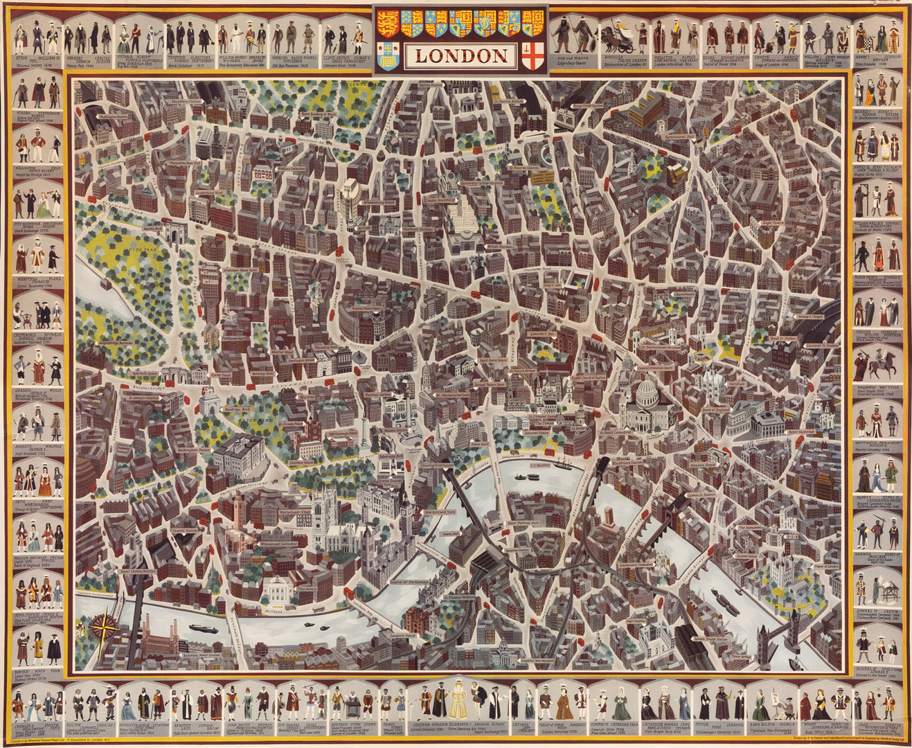 4224955. KARTTA, offsetpainatus, Lontoon keskusta.