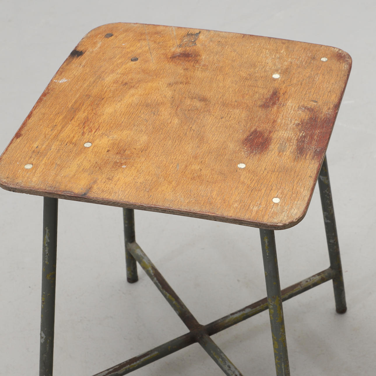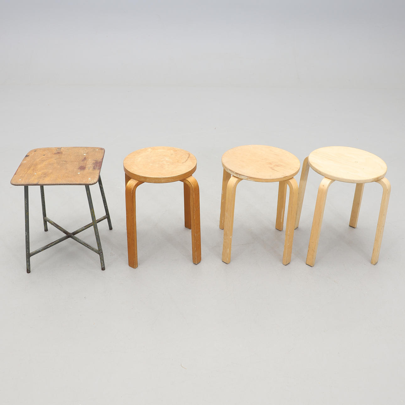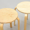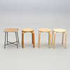 Lavapari ”Frosta”, IKEA, halkaisija 35, korkeus 45 cm. Lava, tuntematon valmistaja, halkaisija 32, korkeus 45 cm. Lava teräsputkirungolla ja vaneriistuimella, korkeus 44,5 cm.