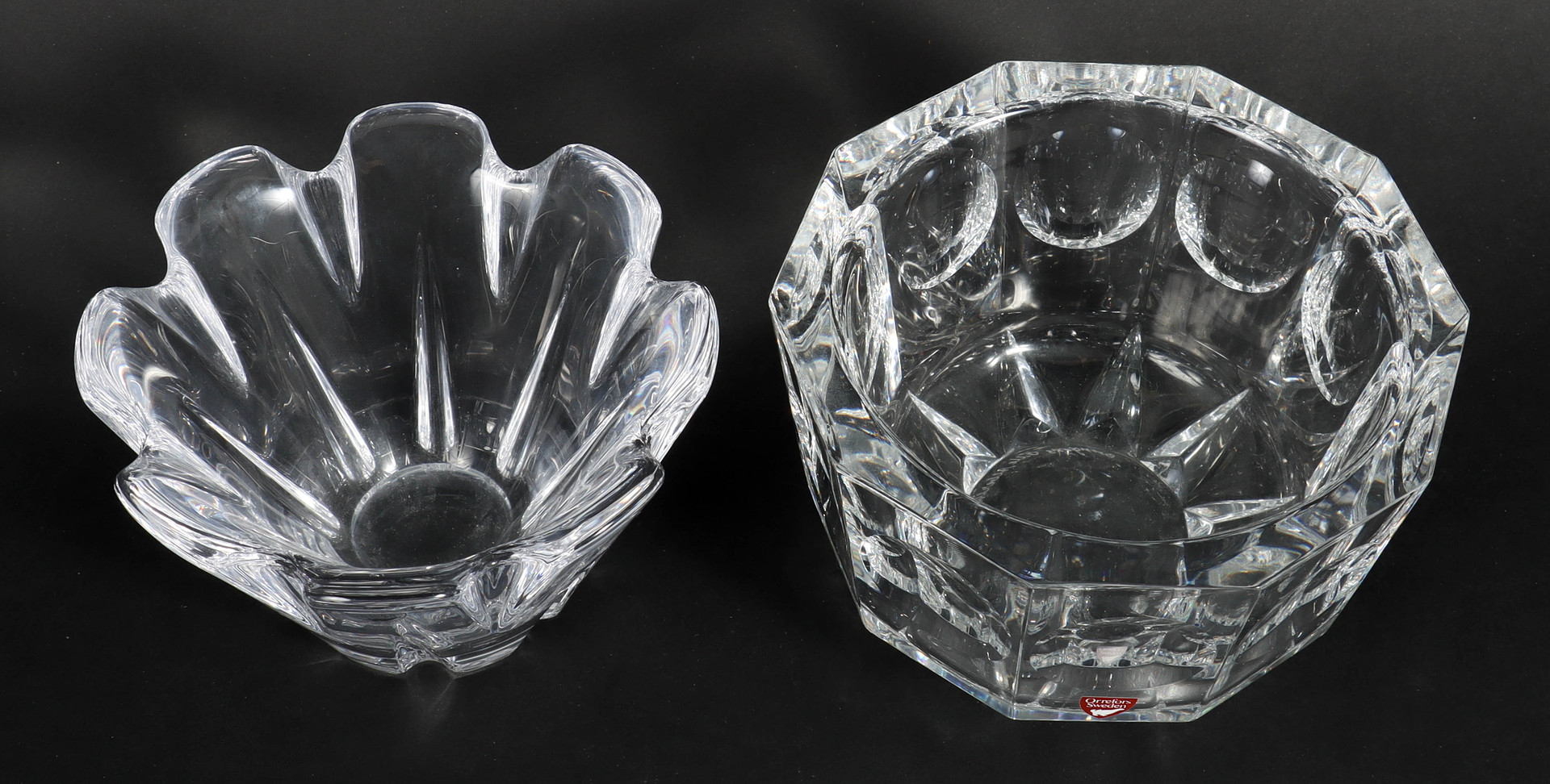 4244597. KULHOT 2 kpl, kristalli, Orrefors.