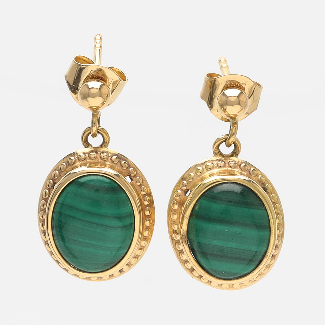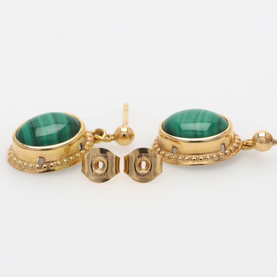 4245536. KORVAKORUT, 18K kultaa, malakiitti.