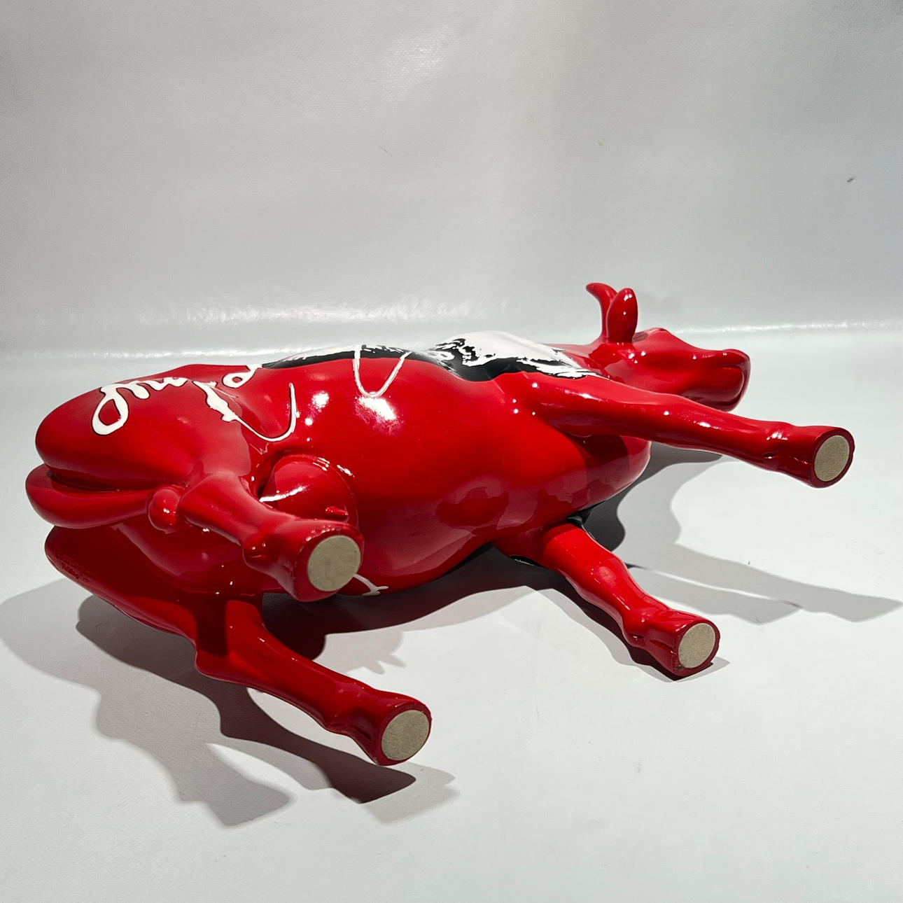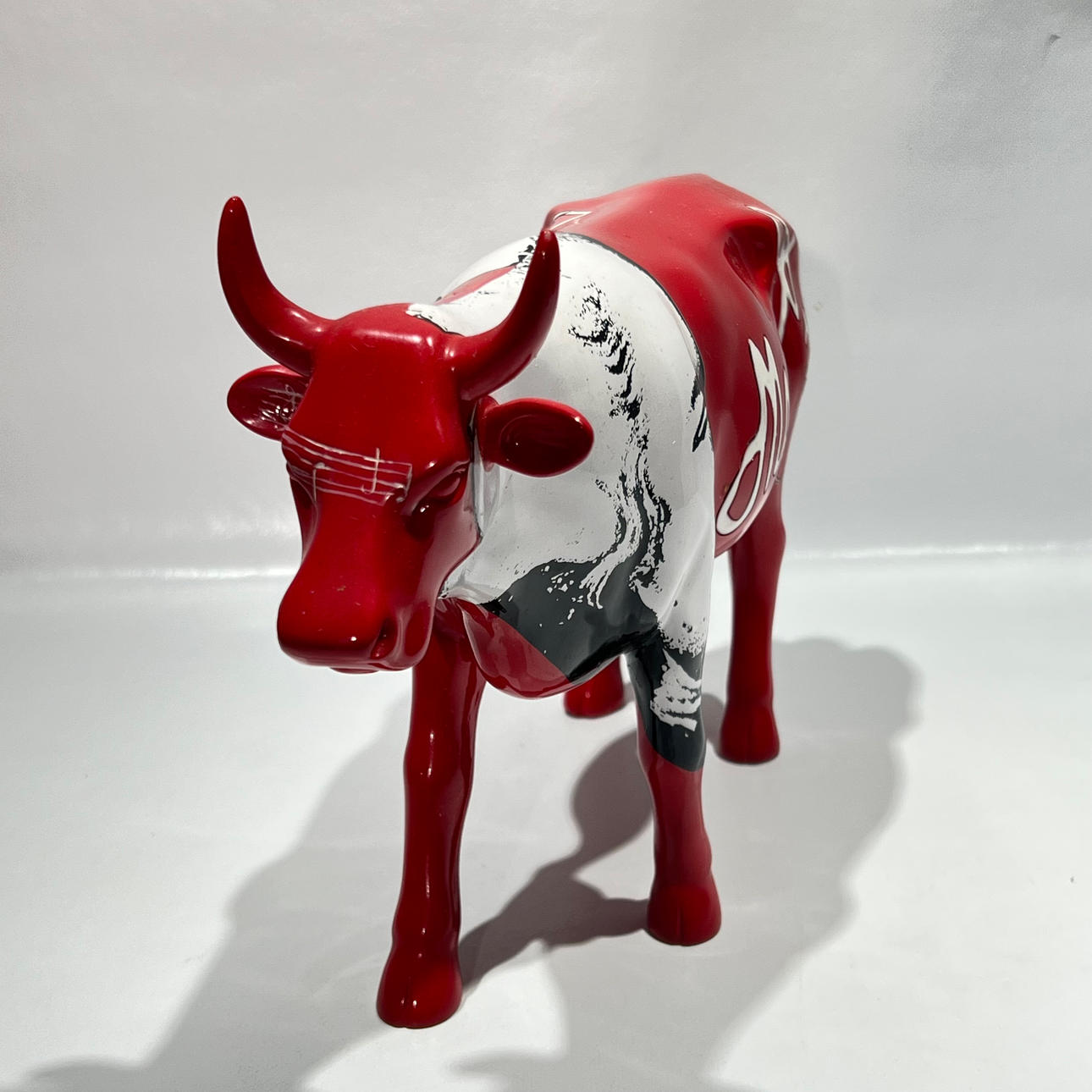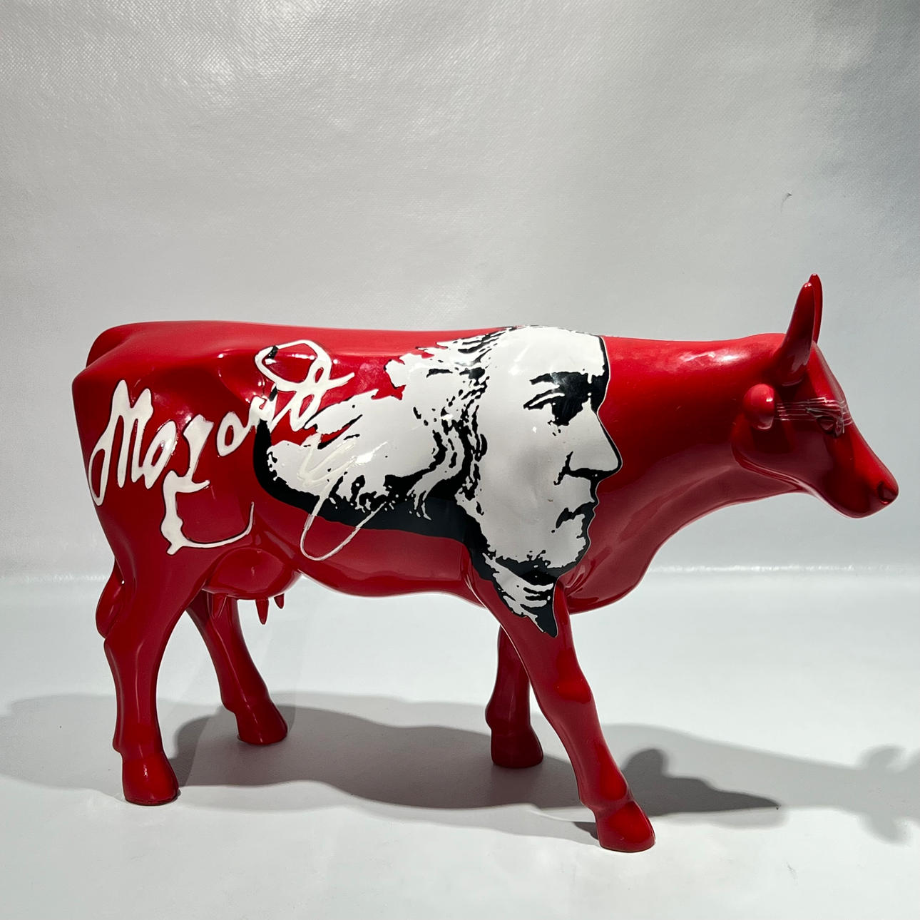 ”Mozart” punainen hartsilehmäveistos.