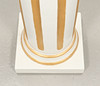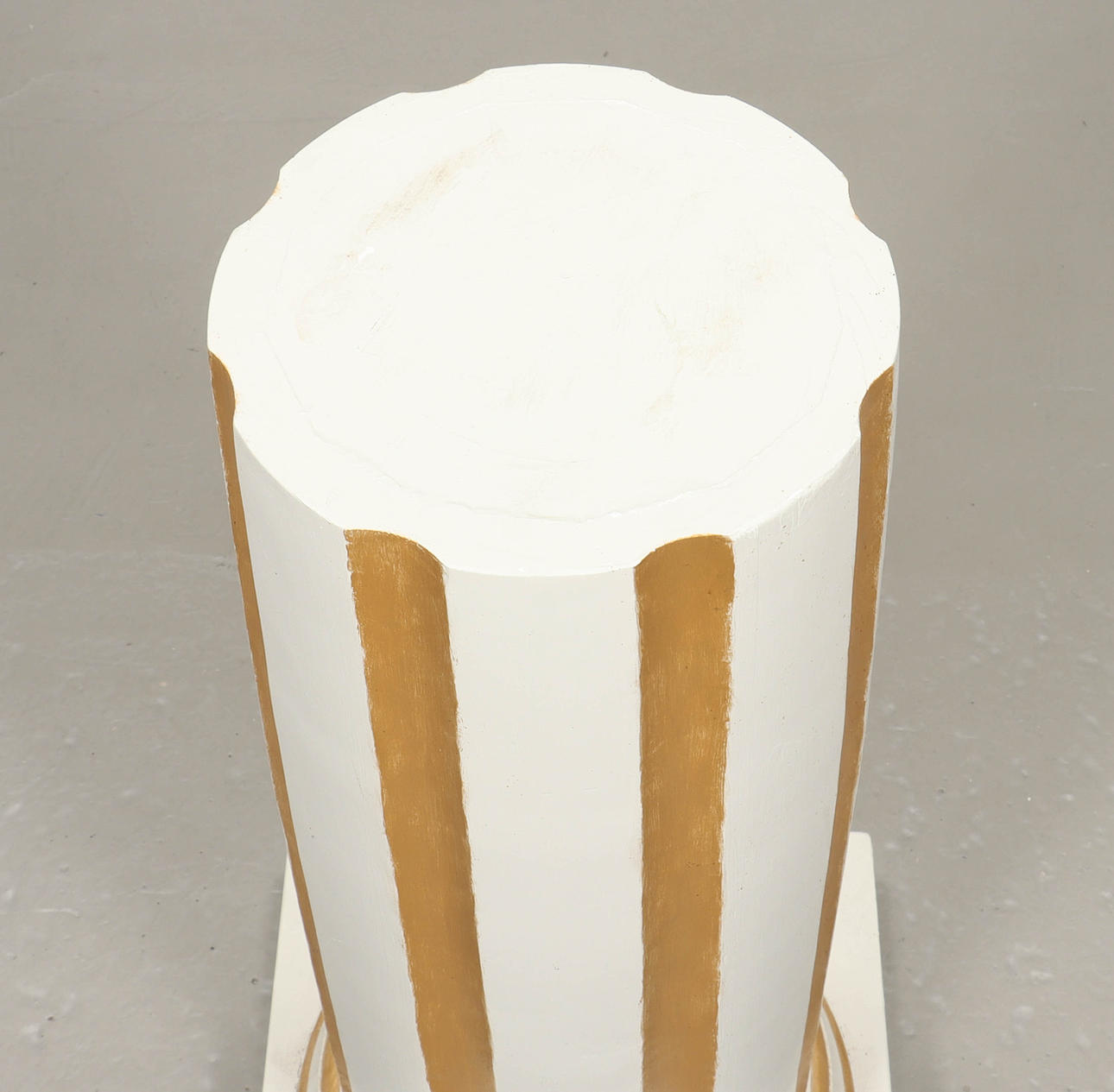 Valkoiseksi maalattu, kullanvärinen kanyelloitu sisustus.