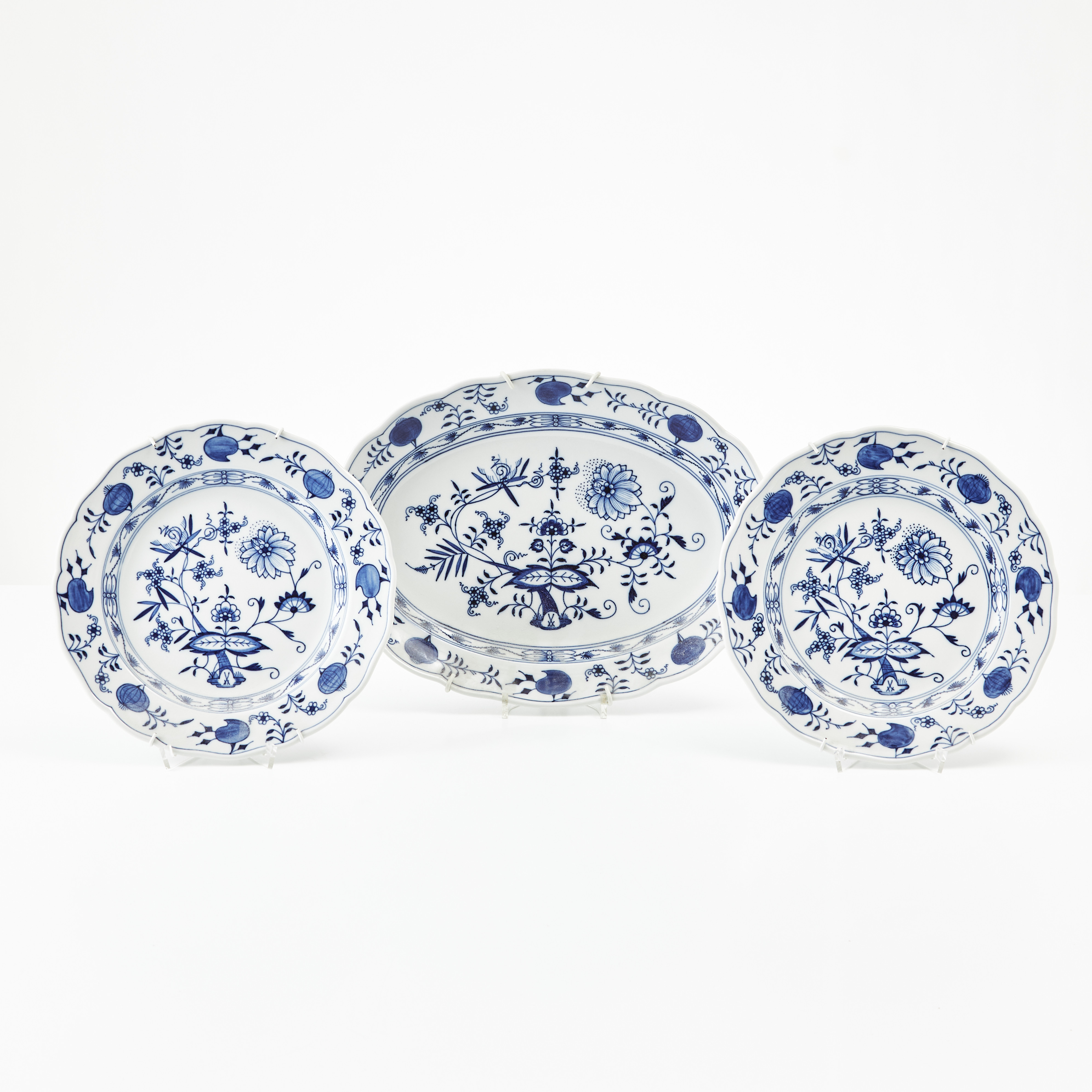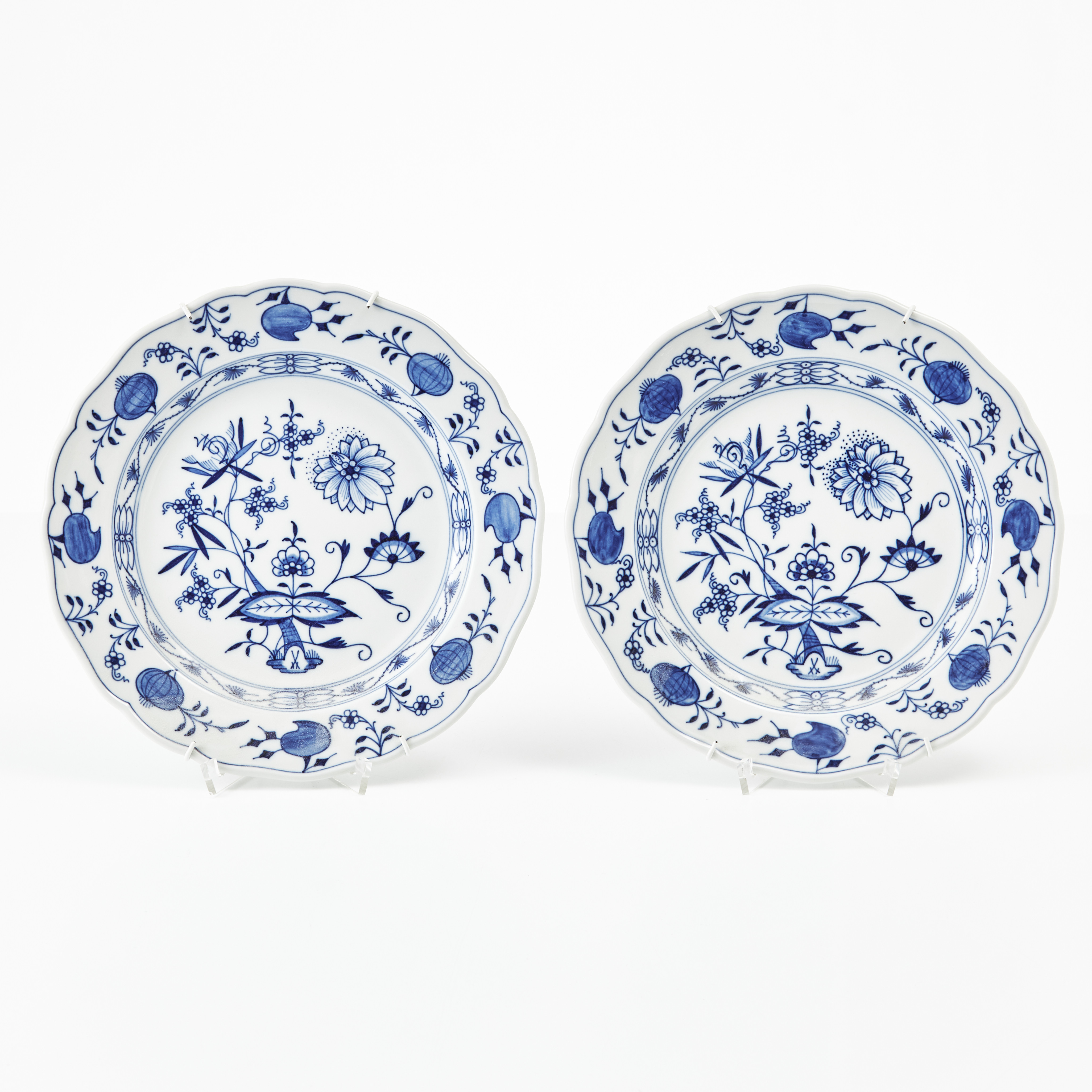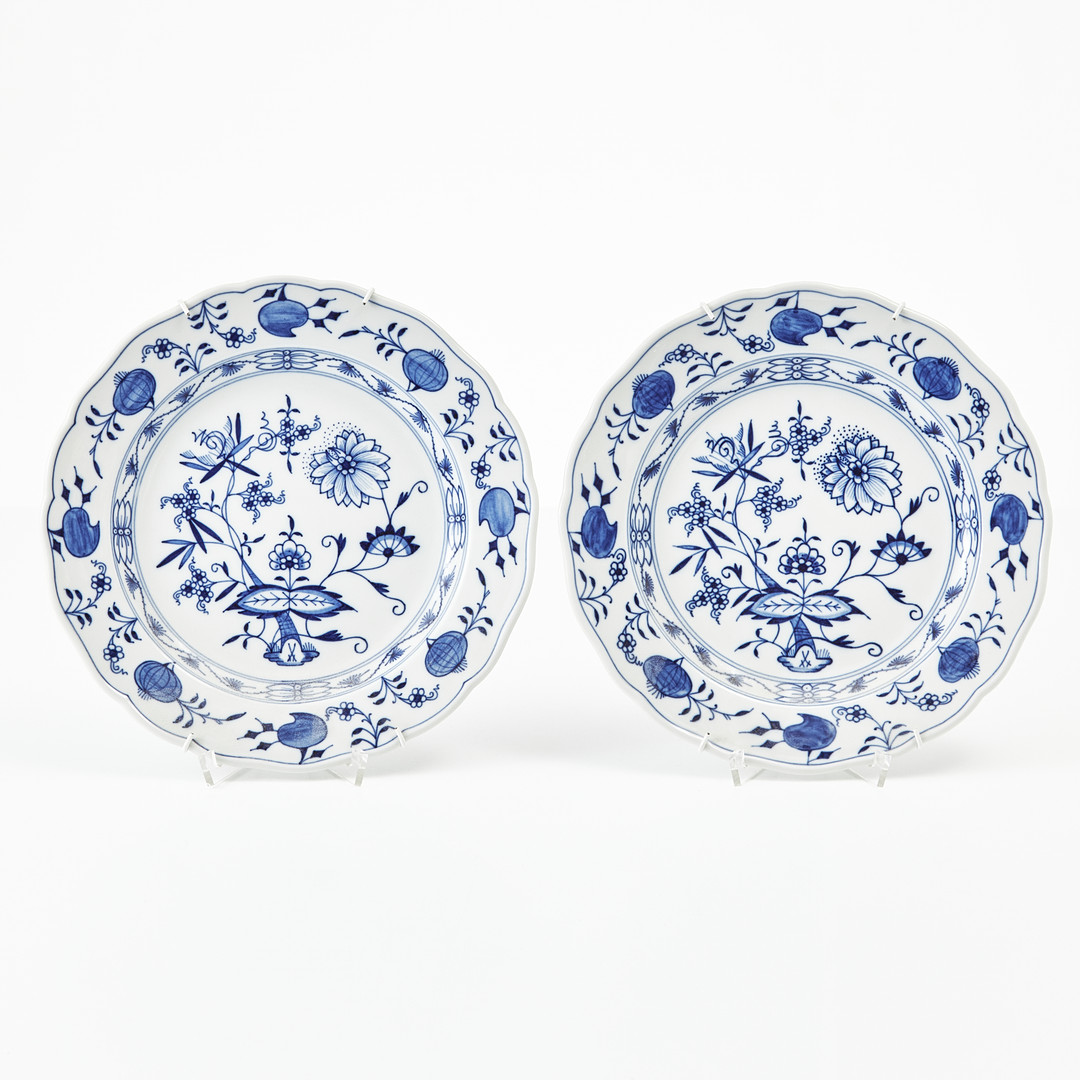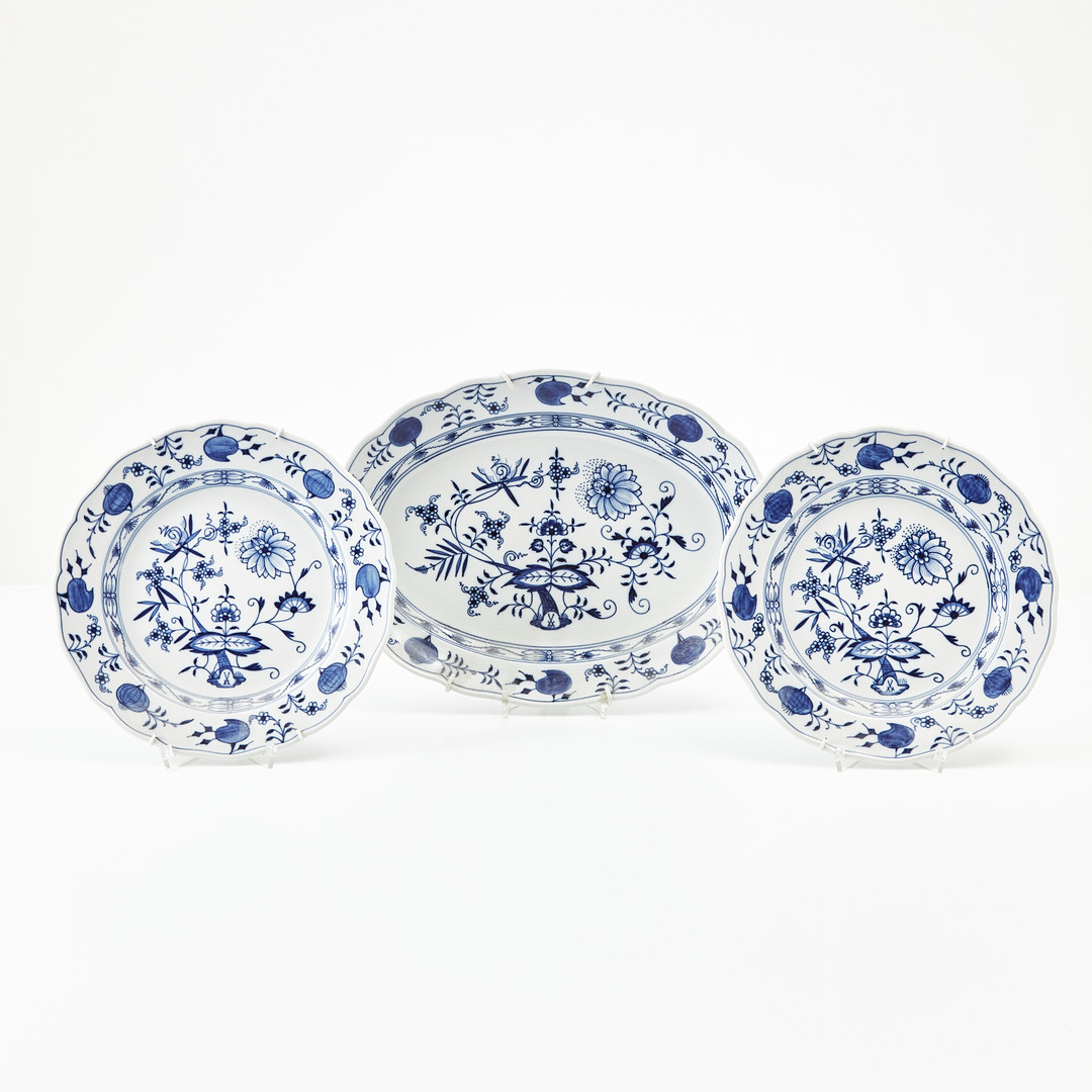 4254228. MEISSEN, 2 lautasta ja 1 asetti, ”The Onion Pattern”, 1900-luku.