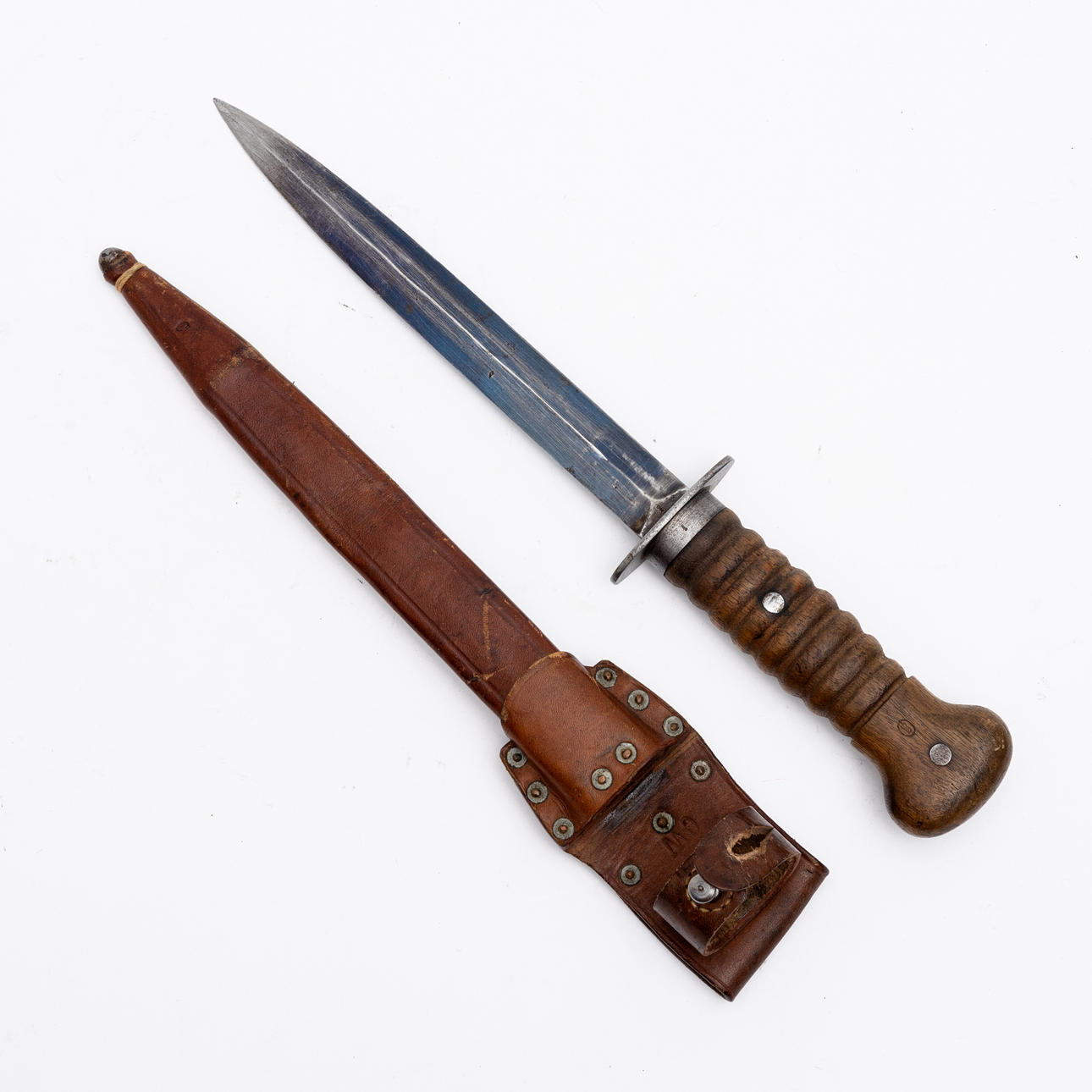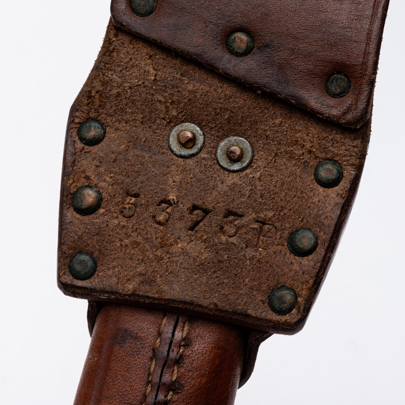 Nahkainen kylpyamme nimikirjaimilla GW ja numerolla 5373B Pituus n. 34 cm. Pituus kylpyammeella n. 38 cm.
