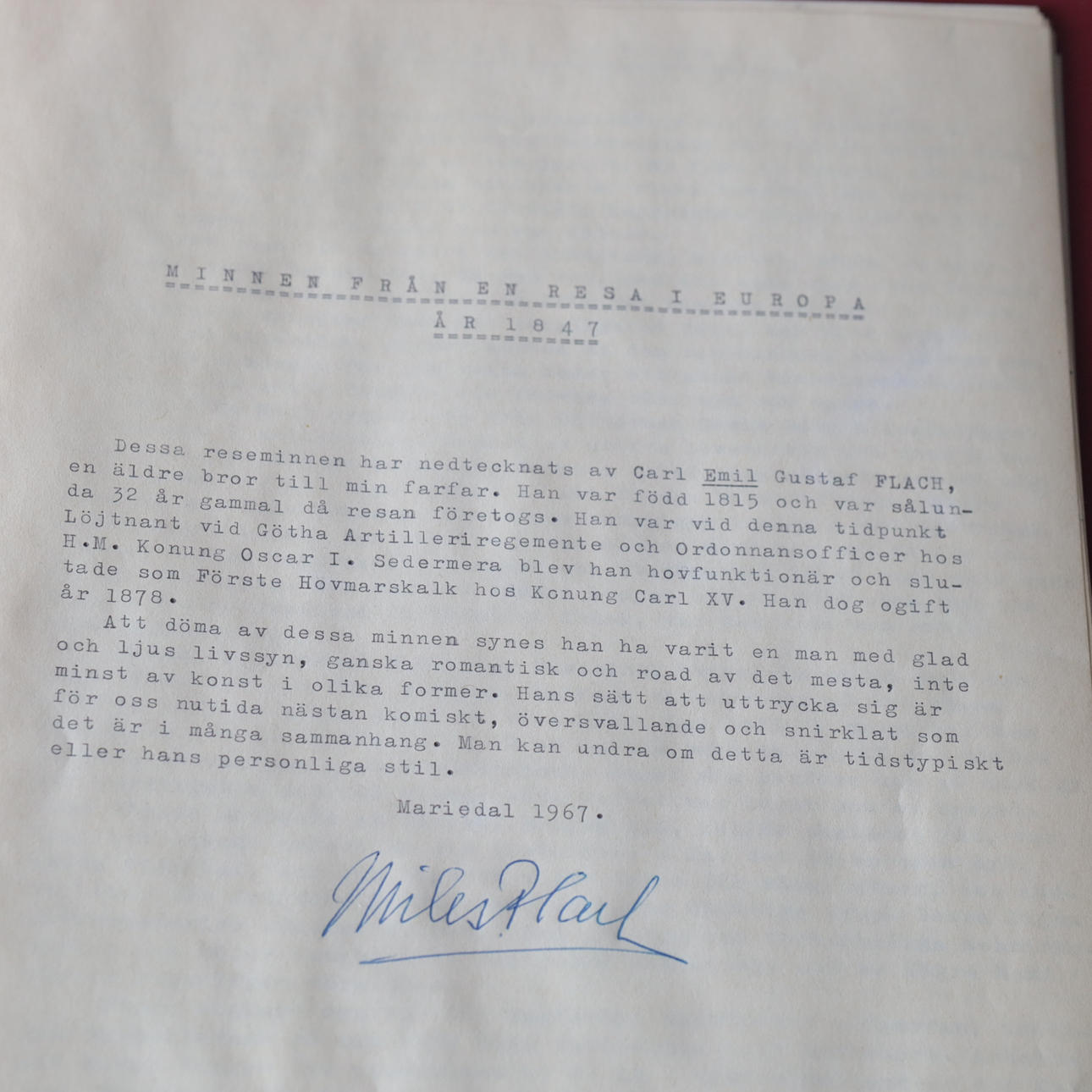 Kirjoittanut sukulainen vuonna 1967. Painettu kirjoituskoneelle, sidottu kansioon.