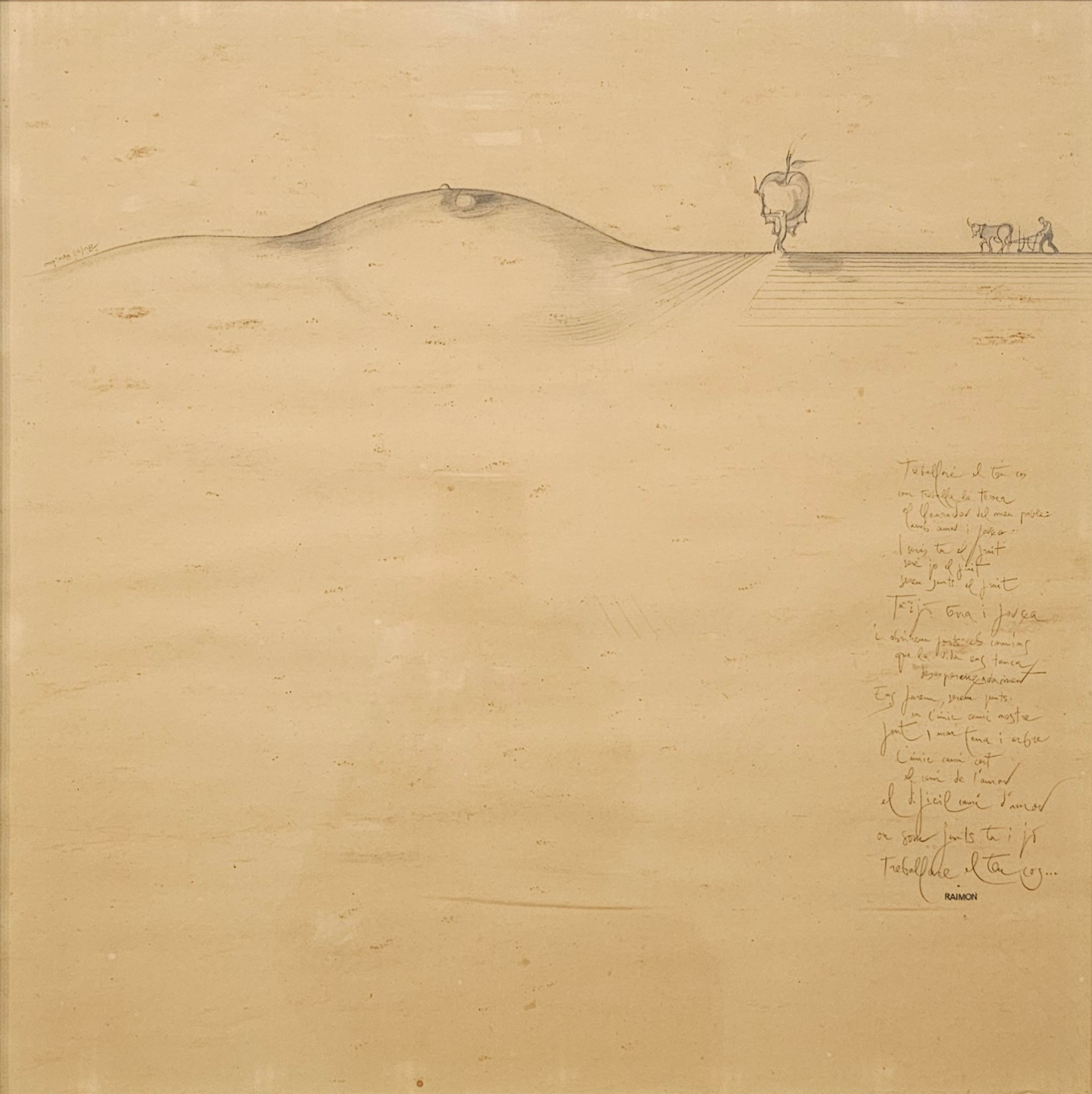 4283385. JOAN CRUSPINERA. LYIJYKYNÄPIIRUSTUS PAPERILLE 1972.