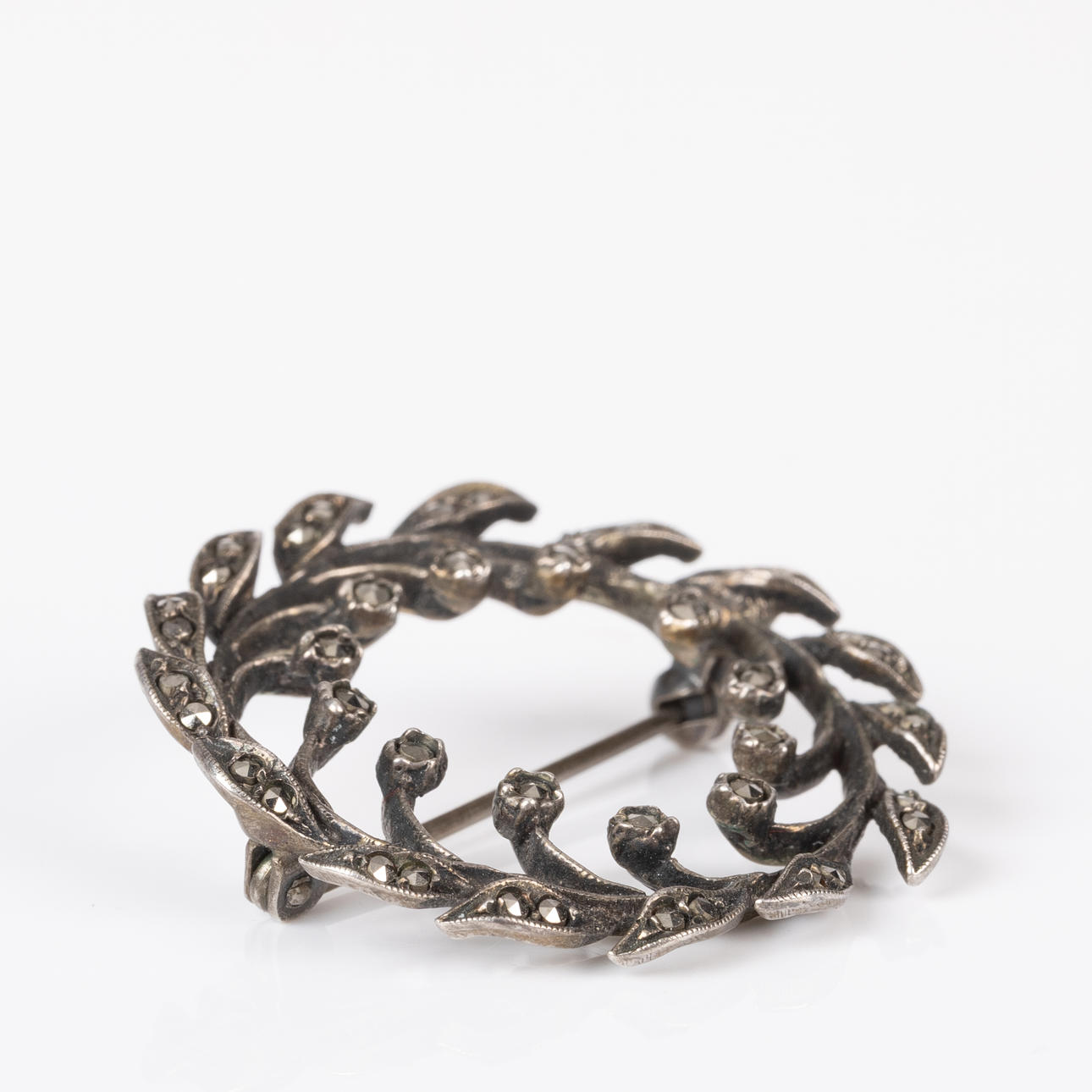 Hopeinen rintakoru leikattuilla markasiteilla