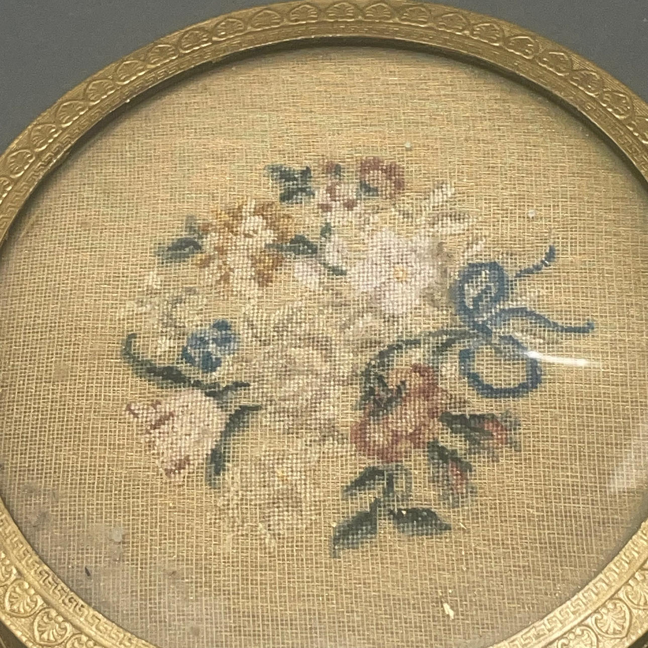 Pari antiikkikullattuja metallijauhekulhoja, joissa on neulakärki, Dia. 13 cm.