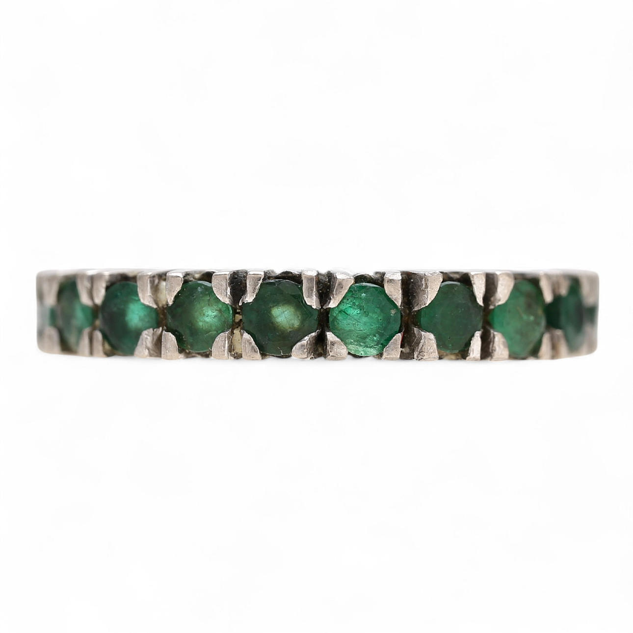 18K valkokultaa och pyöreähiotut smaragdit, ca 0.90 ct. Koko 14/54. 3 gr.