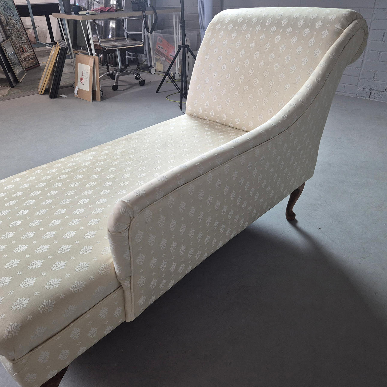 Viktoriaaninen tyyli, puisilla cabriolituilla, verhoilu tarvitsee puhtaan 65cm d x 83cm t x 163cm.