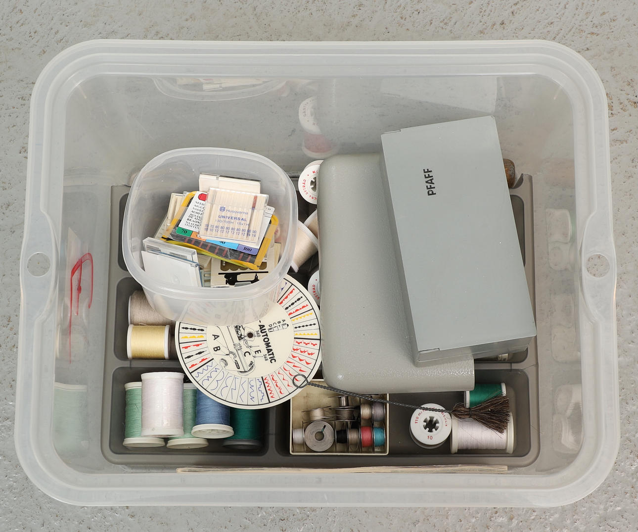 Mukana toimitettu muovilaatikko lisävarusteineen ja käyttöohjeineen. Muovilaatikon mitat korkeus noin 20 cm, noin 38x30 cm.