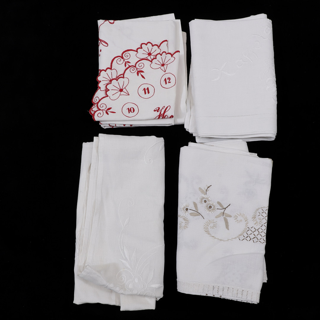 4312467. PÖYTÄLIINAT, 8 kpl, kirjailtu.