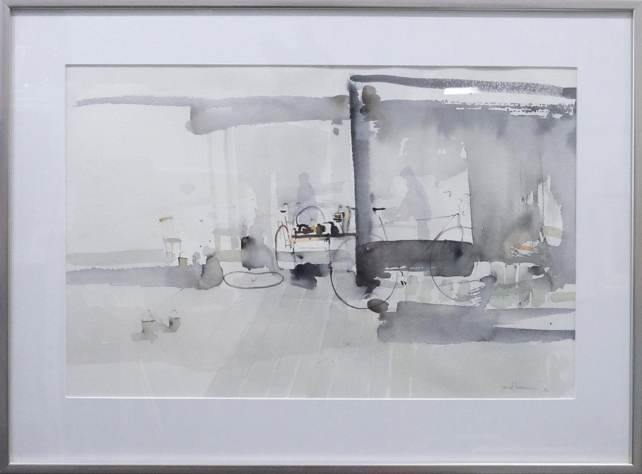 JOHNNY ANDERSSON. POLKUPYÖRÄPAJA, AKVARELLI.