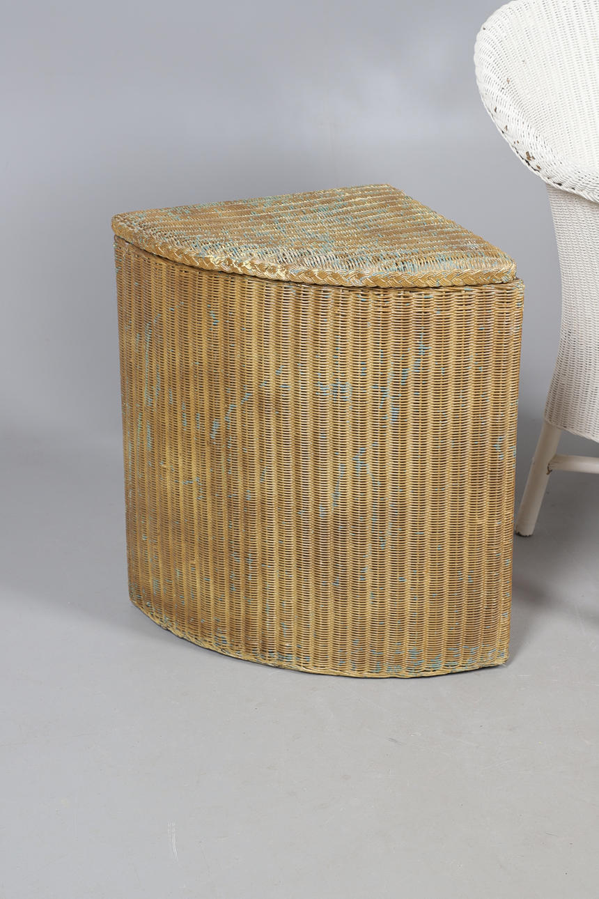 valkoiseksi maalattu viimeistely, 56 cm leveä x 75 cm korkea, yhdessä LLOYd Loom -pyykkikorin kanssa kultamaalatulla viimeistelyllä, 55 cm korkea (2).