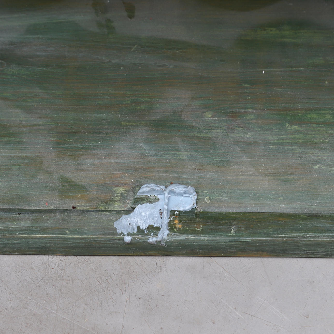 Käyttökuluma. Naarmuja ja jälkiä. Vähemmän värihäviötä. Lasi, jossa on vaurioita.