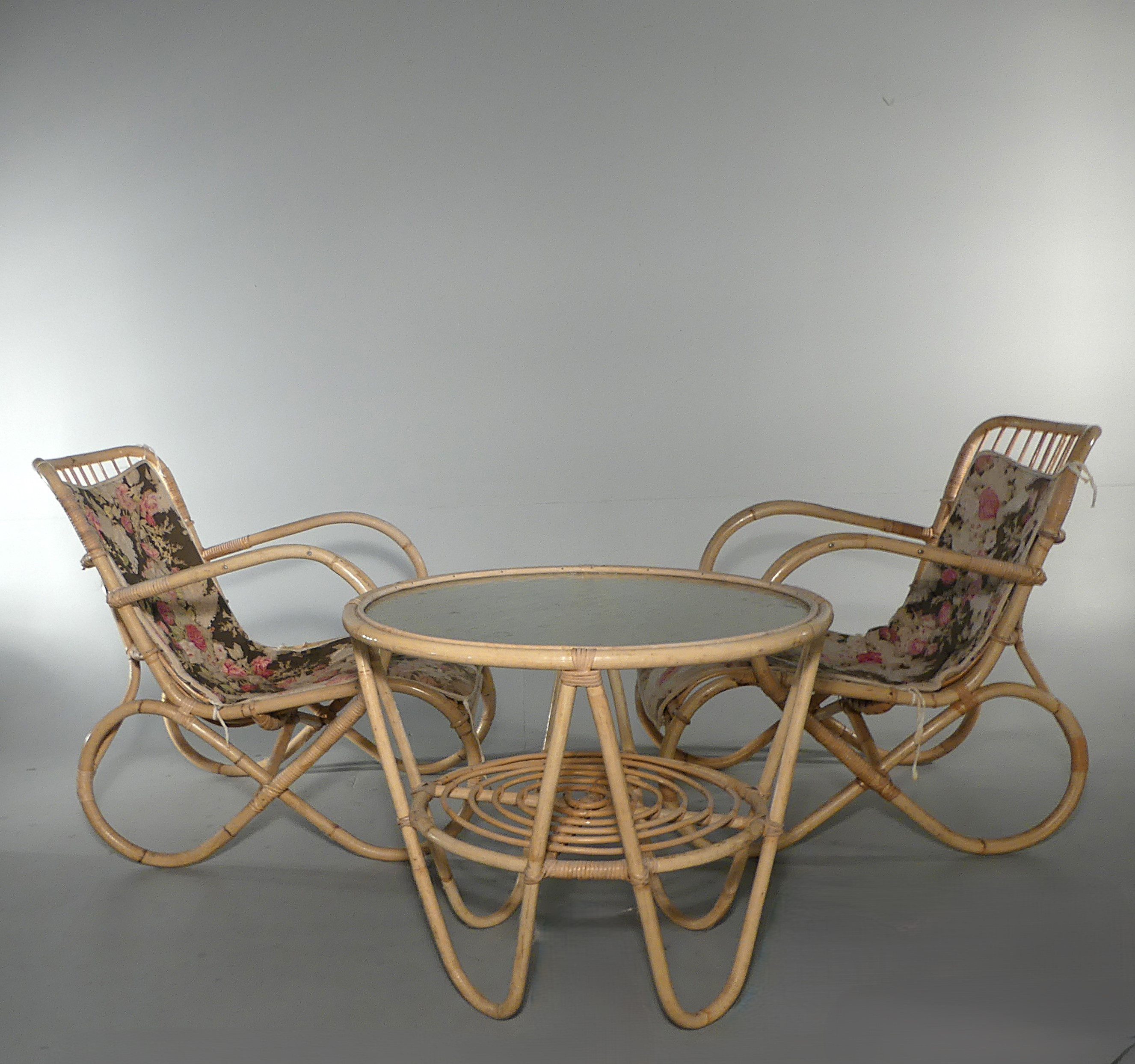 4316098. PUUTARHAKALUSTEET, kolme kappaletta, rottinki.