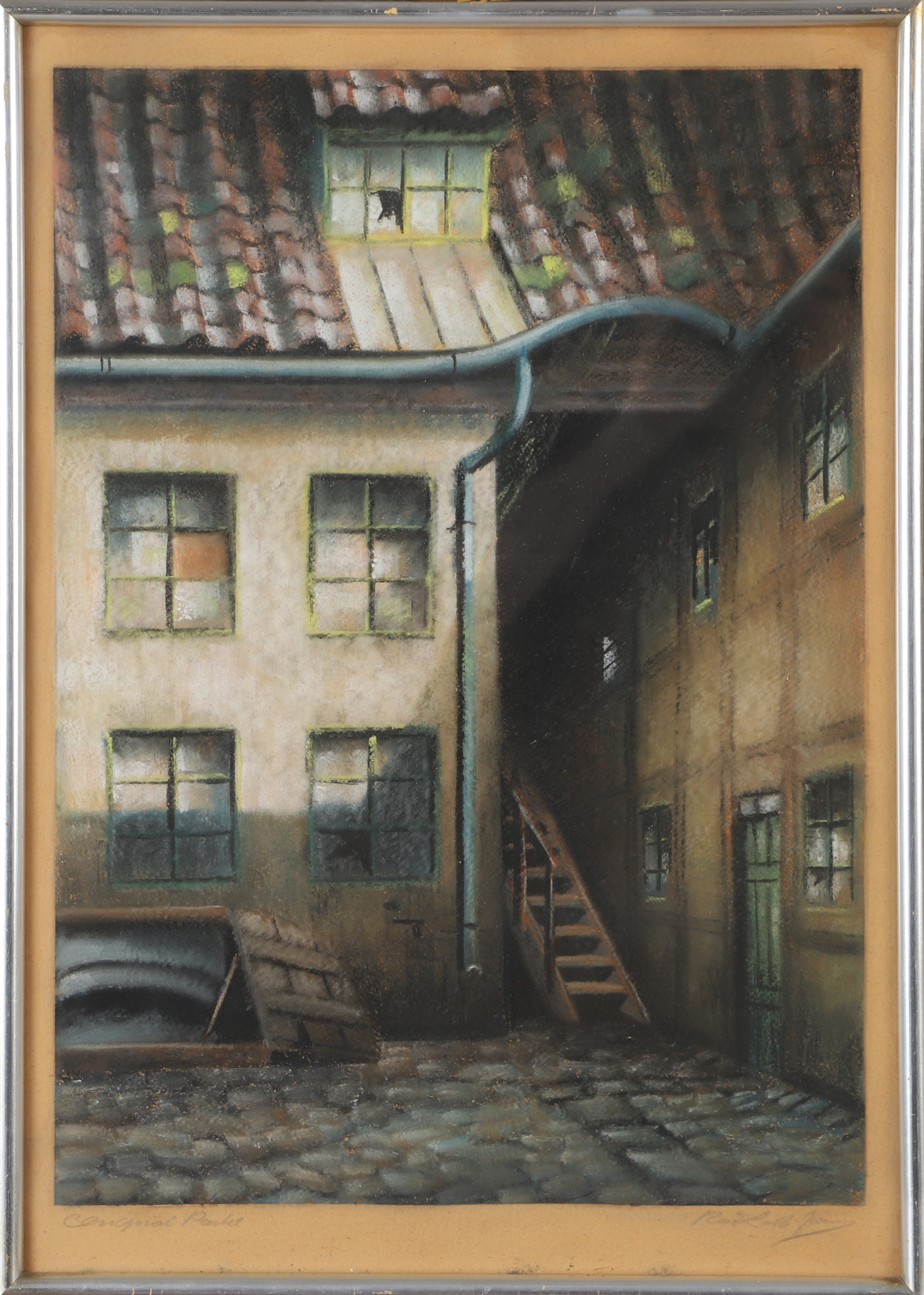 4331733. KAI LÖTH-JENSEN. Takapiha, pastelli, signeerattu.