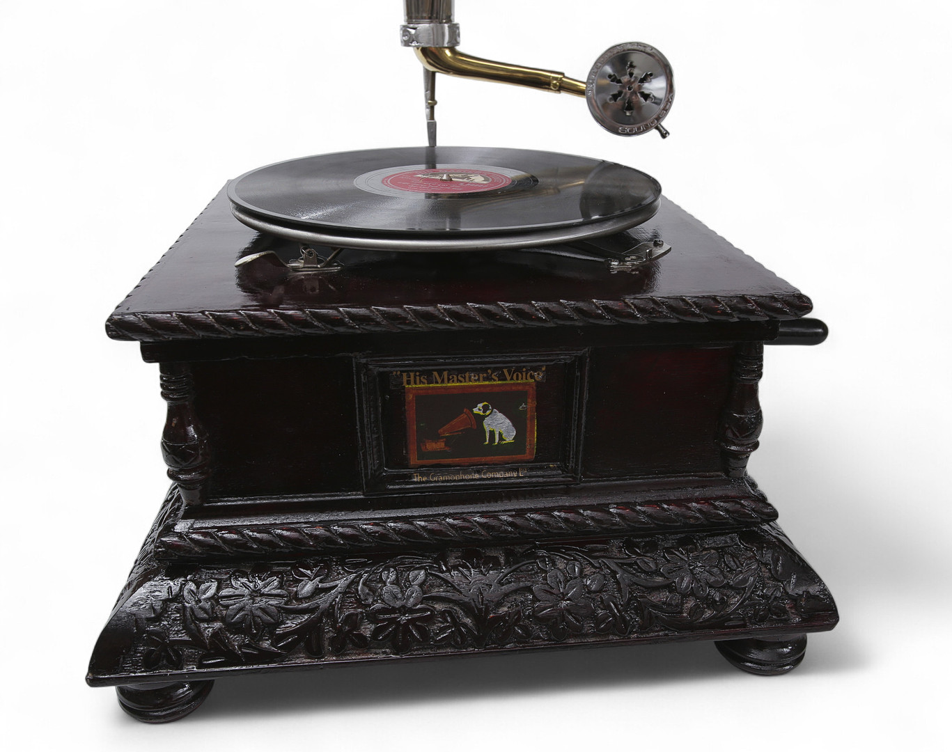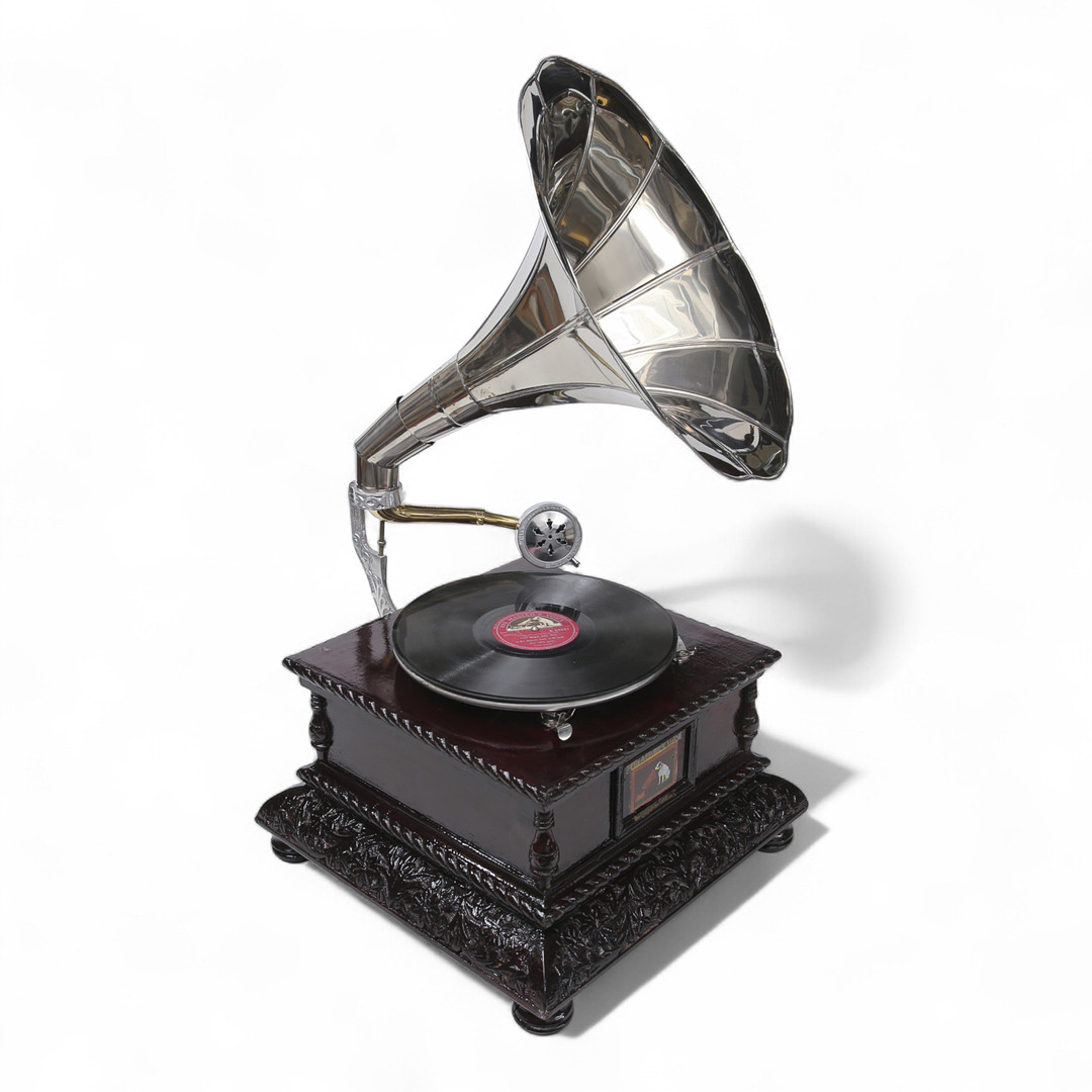 4333620. KAMPIGRAMOPHONE, puu ja metalli, nykyaikainen.
