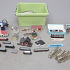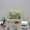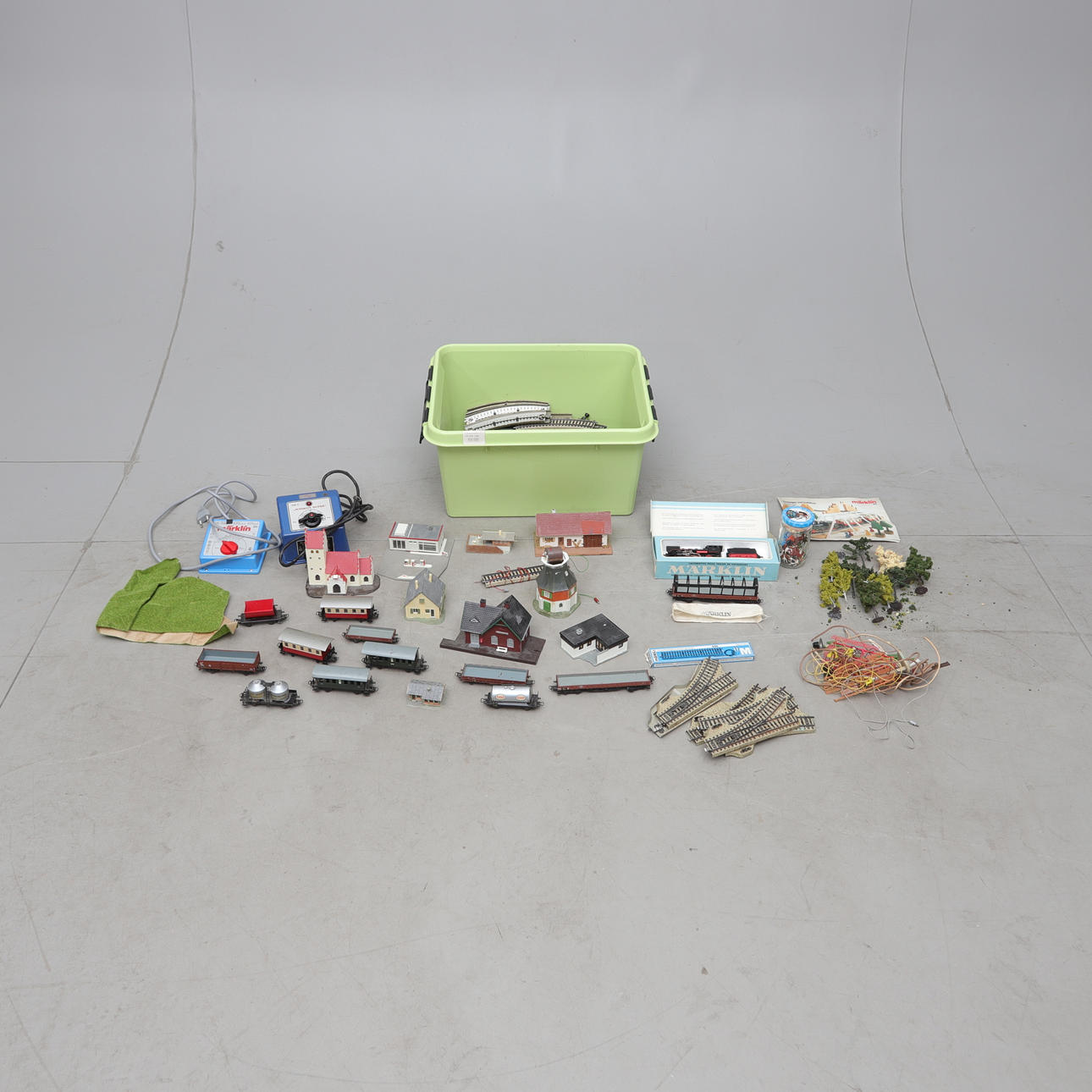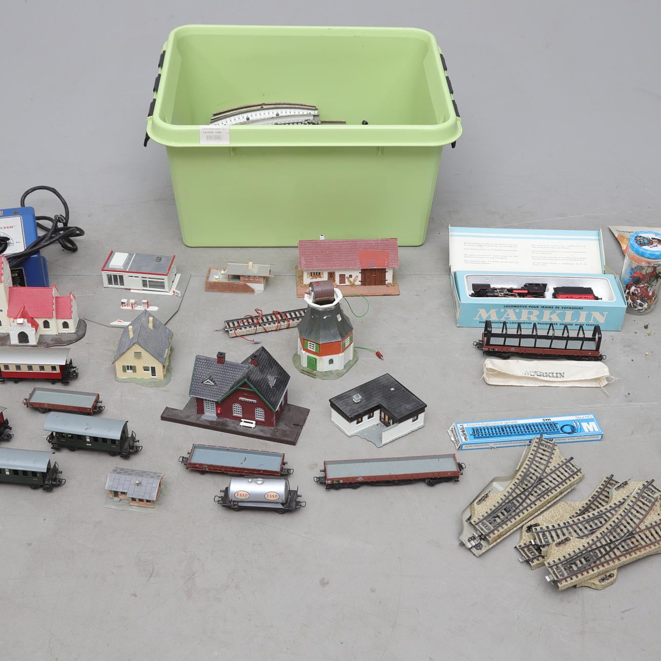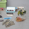 b.la. veturit, vaunut, rakennukset ja kiskot. Kaksi muuntajaa. Laatikon koko n. 50x39x27 cm.