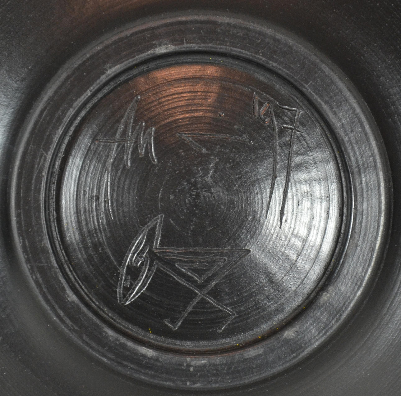 Keramiikka, signeerattu. Korkeus 6,2 cm, halkaisija 27,5 cm.