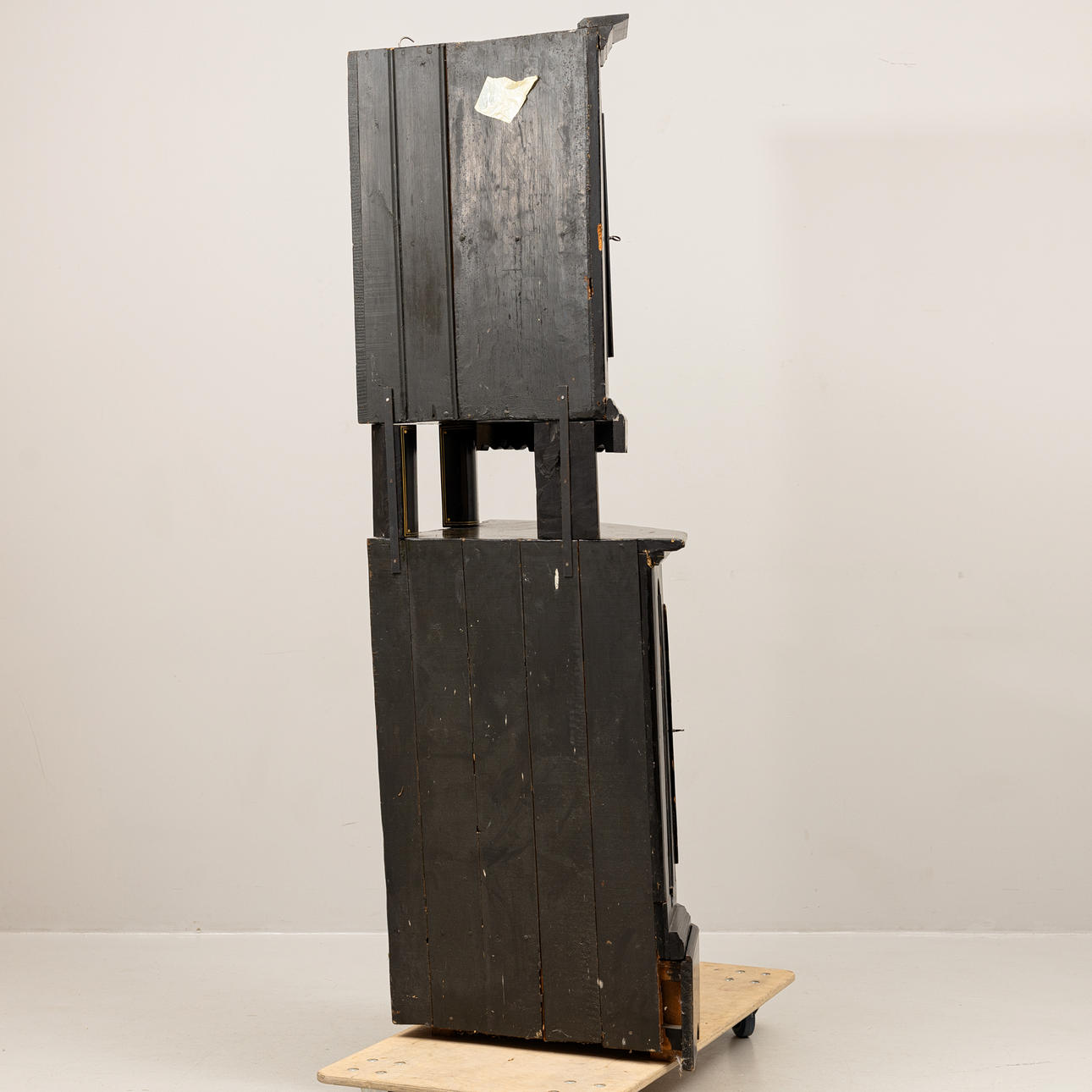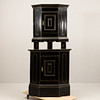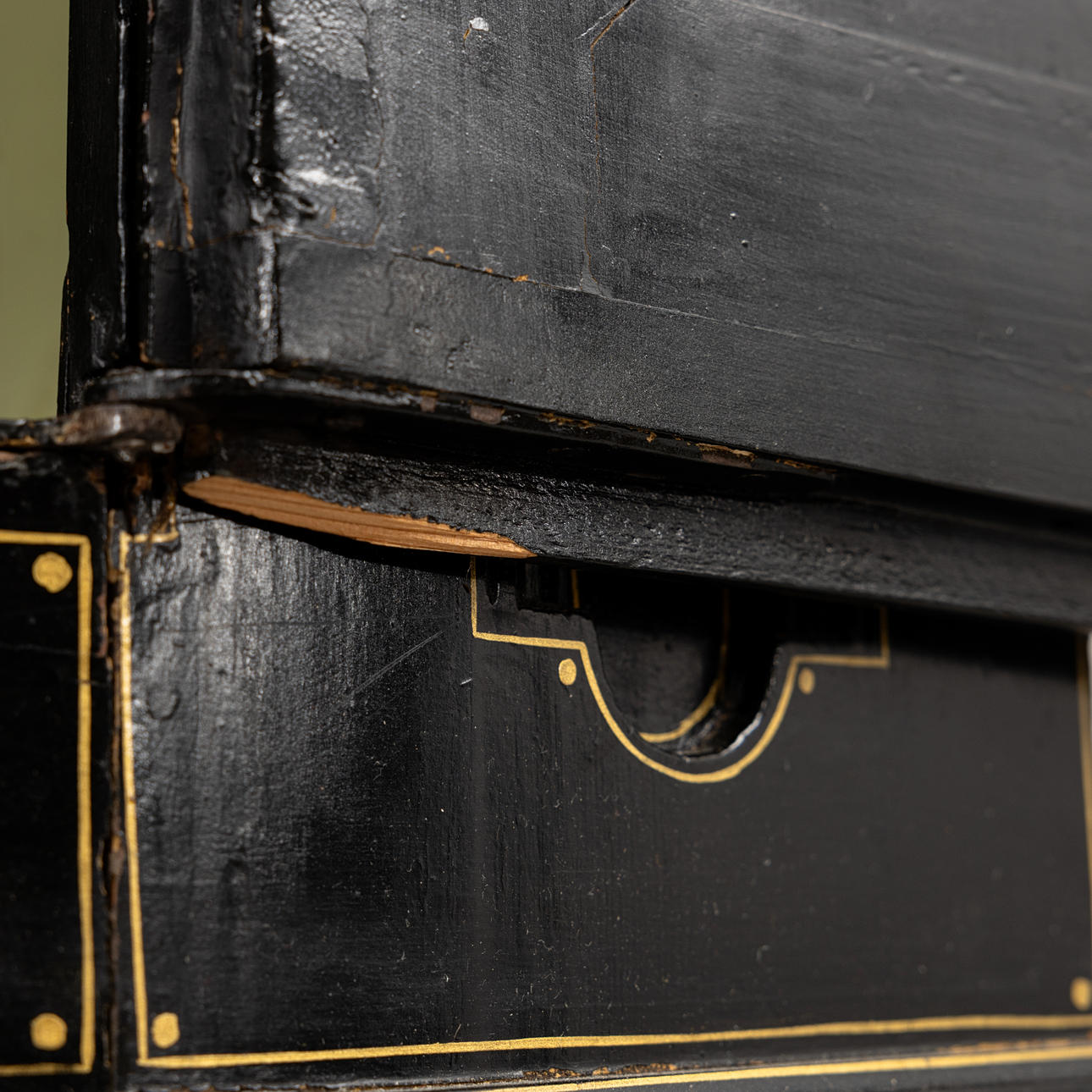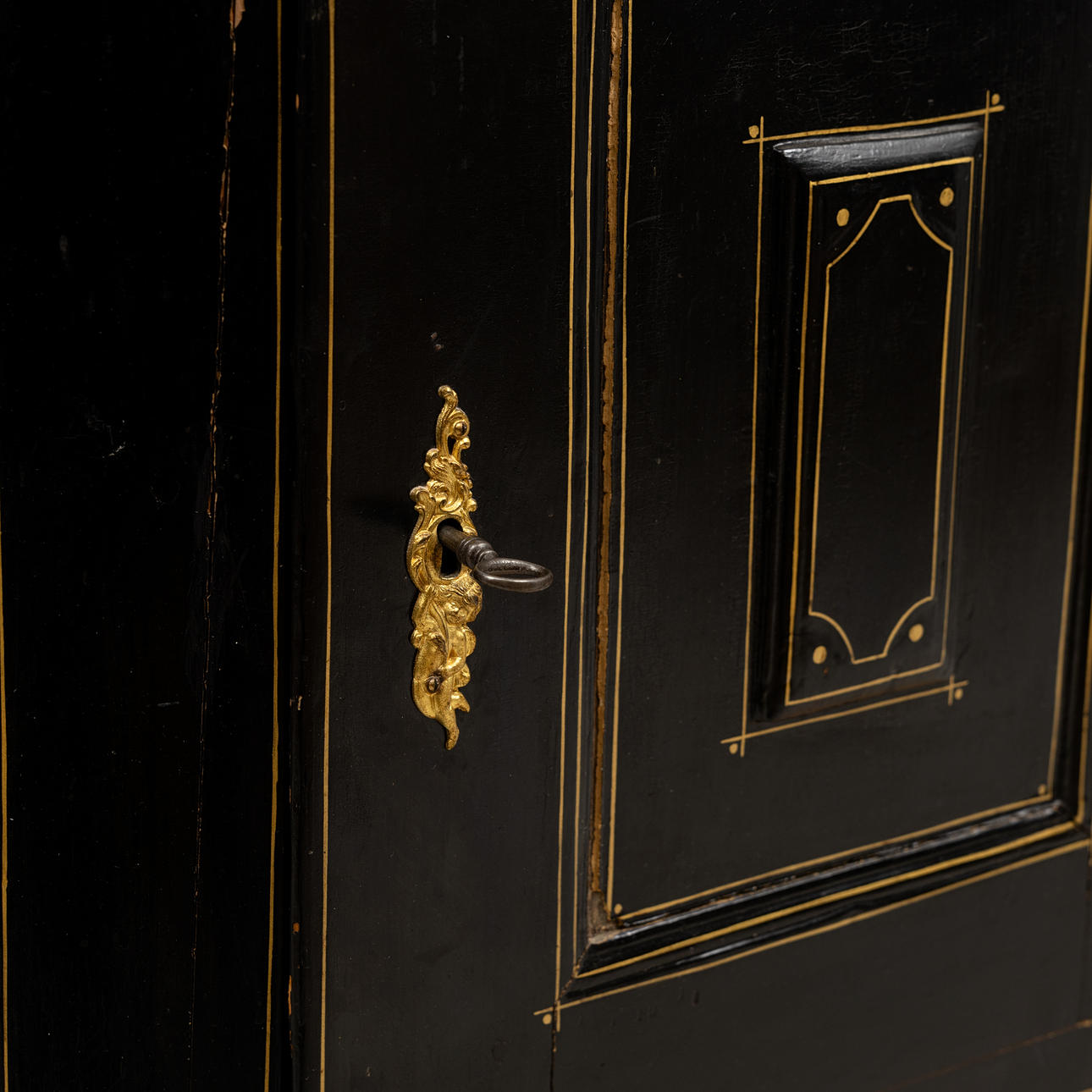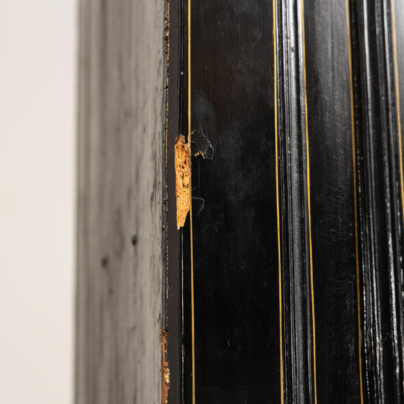 Kaksiosainen, mustaksi maalattu kultaisilla yksityiskohdilla. avoin, leikattu sisustus.