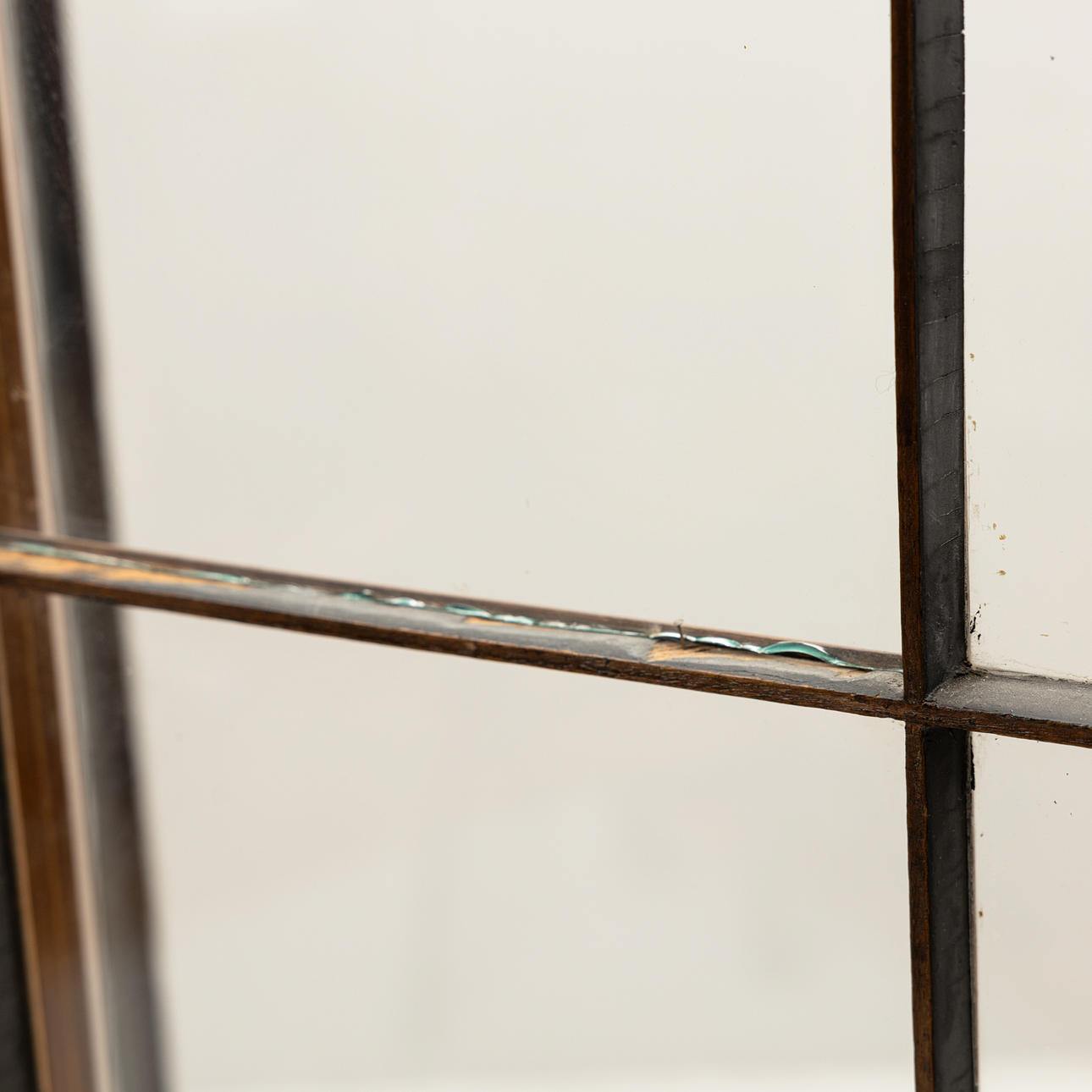 Ikään liittyvä kuluminen, Lasiruutu, jossa halkeileva reuna on hieman löysä.