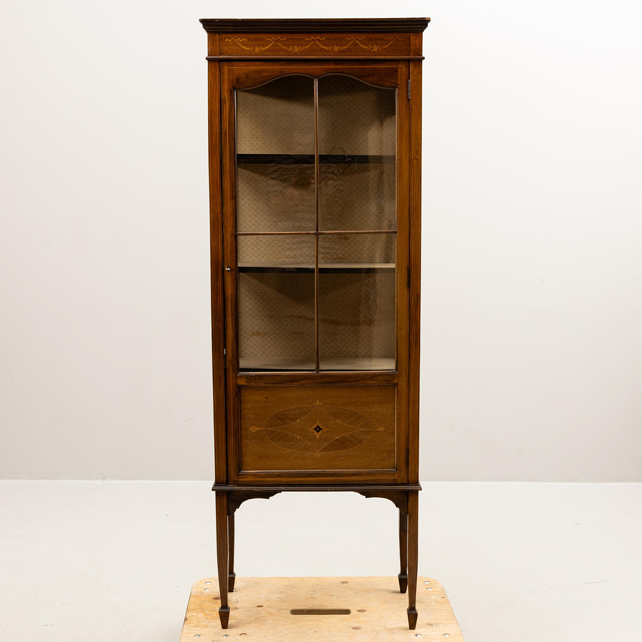 sisäisesti vuoratut hyllyt. Leveys n. 58, syvyys 32, korkeus noin 170 cm.