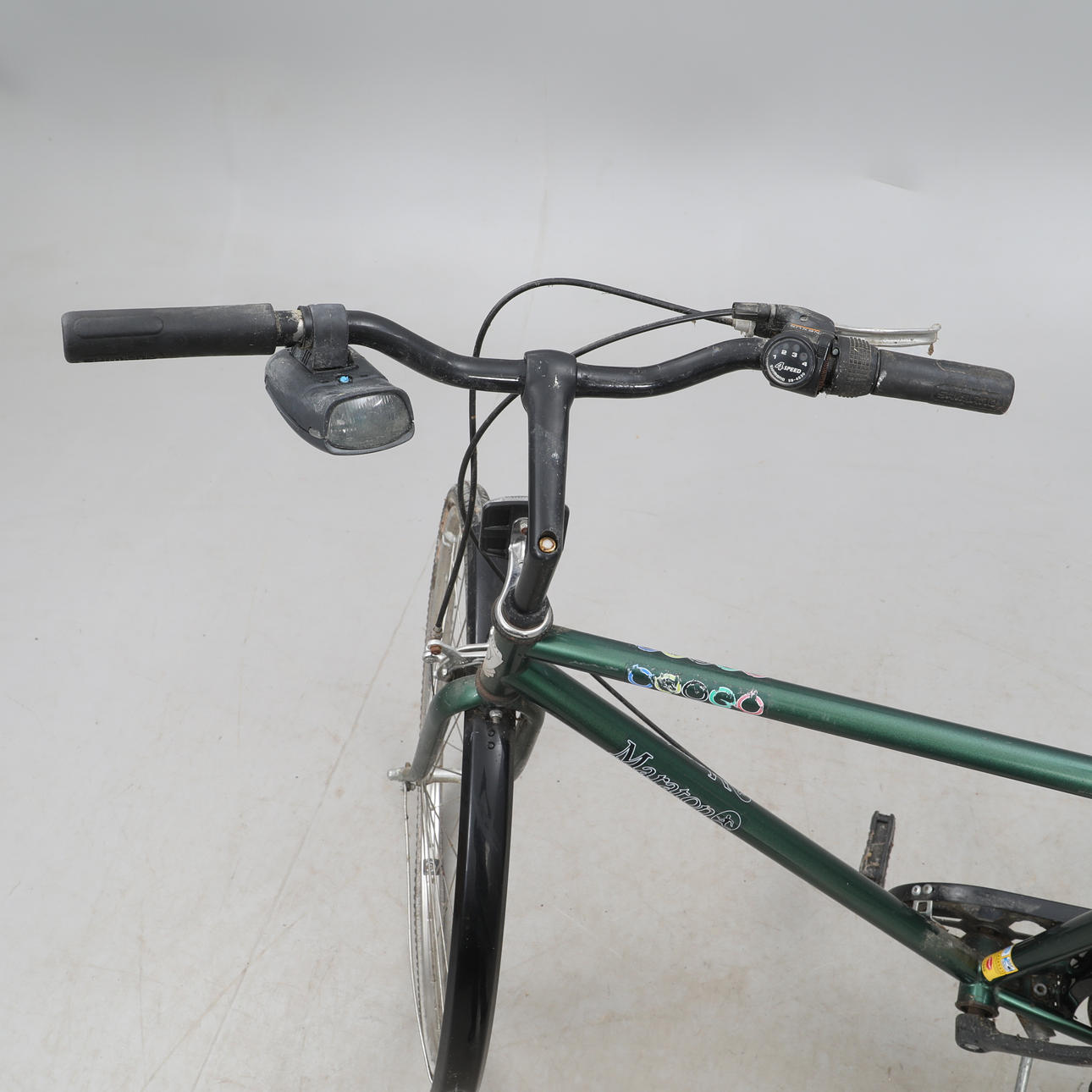 Runko noin 55 cm Pyörät 25 tuumaa 4 vaihdetta Shimano Rullaa hyvin Jarru ok.