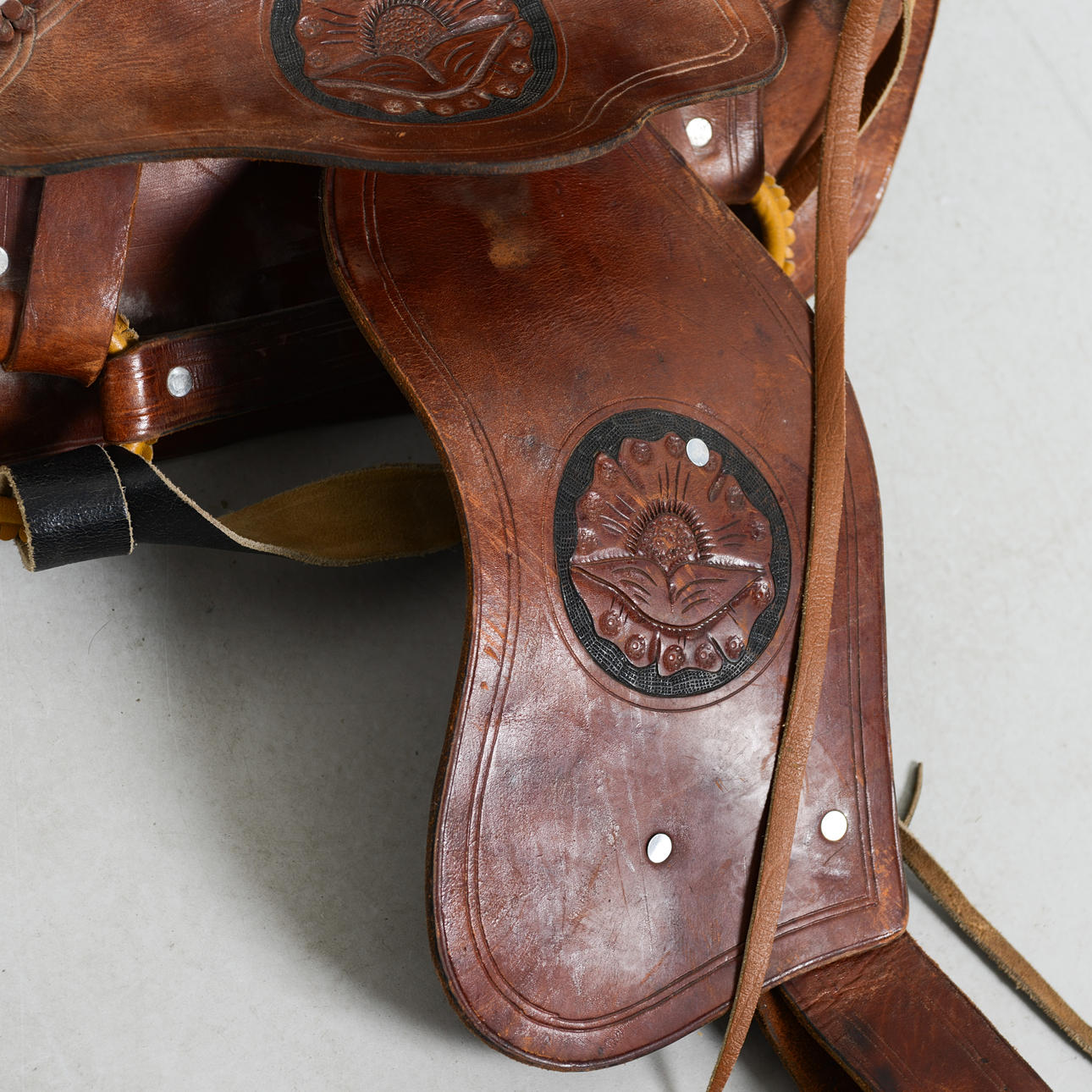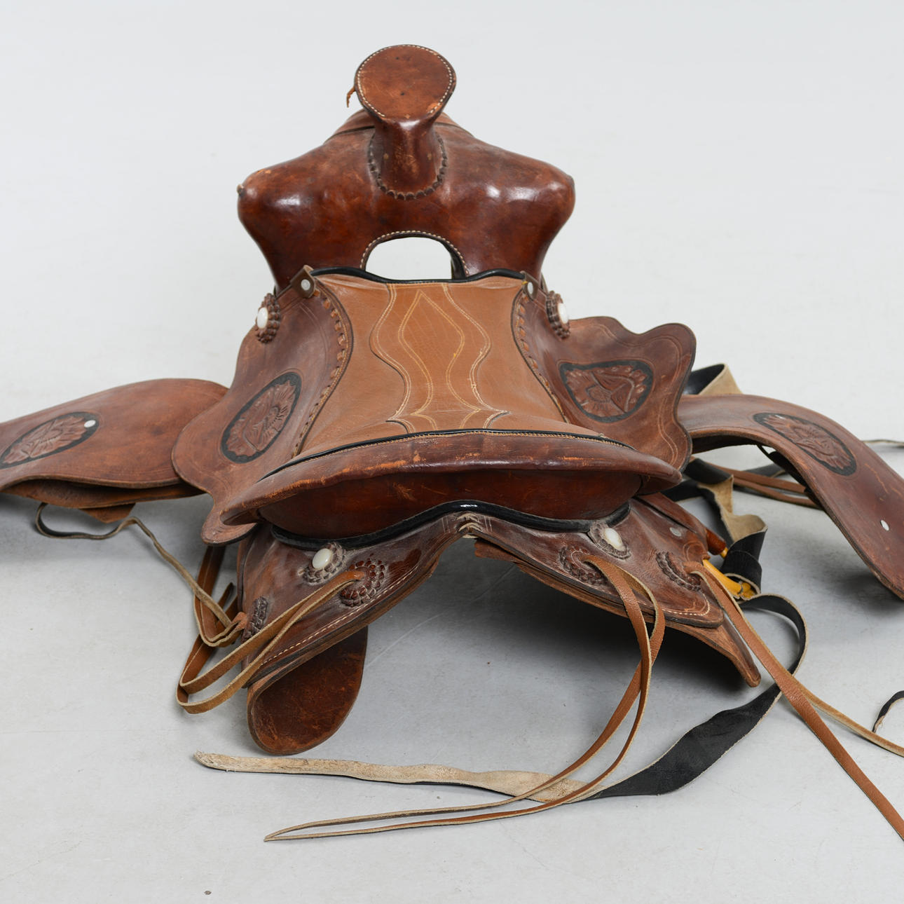 Nahkaa. Pituus: 51 cm. Leveys n. 40 senttimetriä.