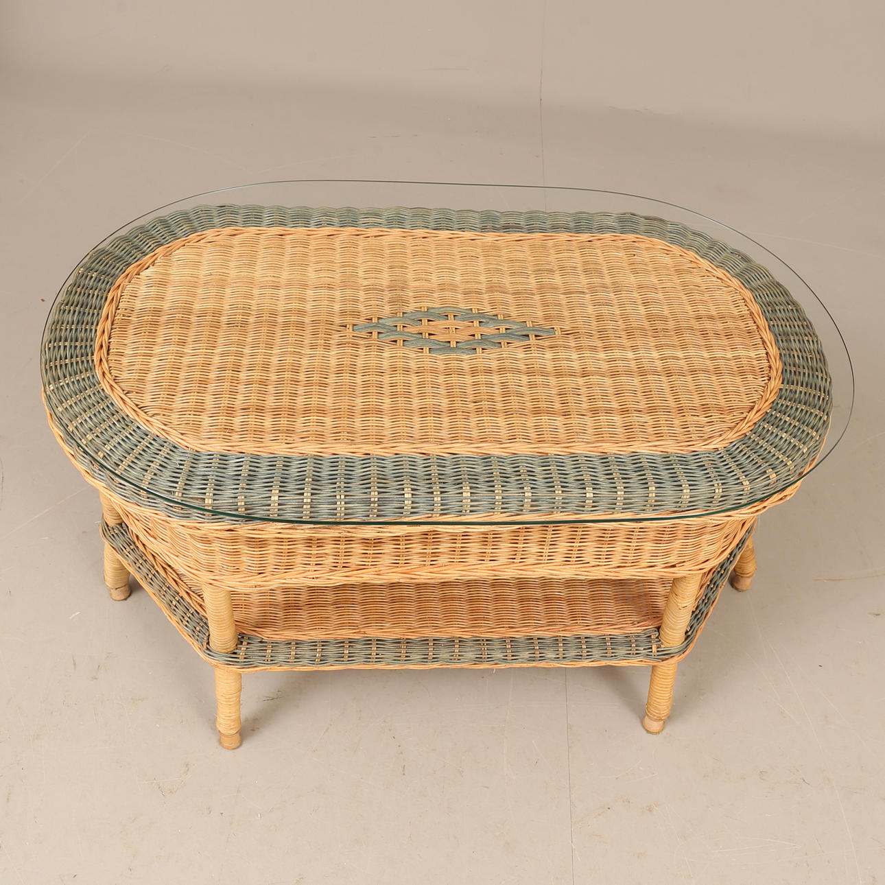 Lasipöydän korkeus n. 52 cm, lasilevy n. 90 x 57 cm.