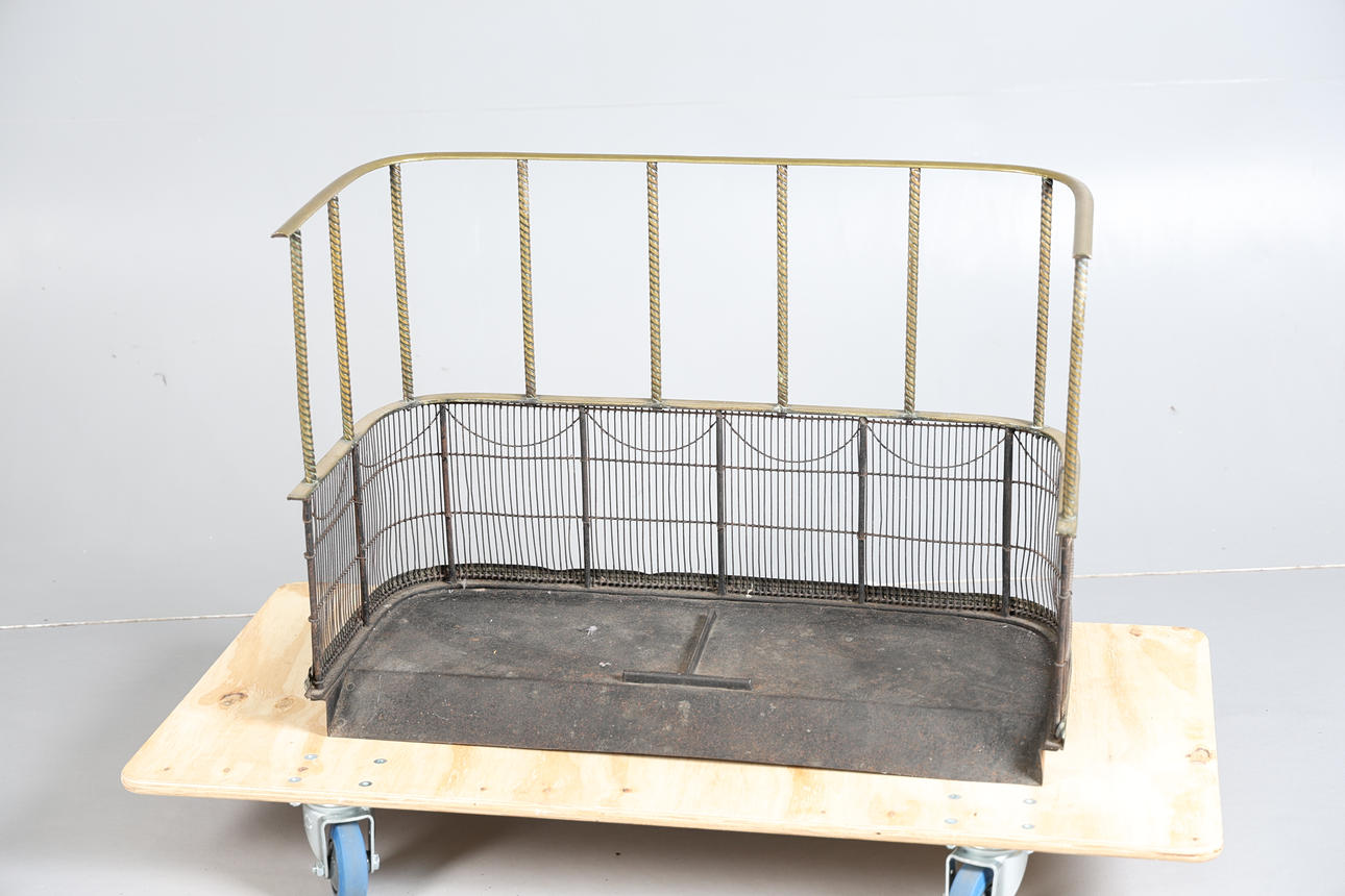 Kaareva yläosa kierrettyjen pylväiden yläpuolella verkkopohjan yläpuolella ja nostettu pallojaloille, 86 cm leveä 62 cm.