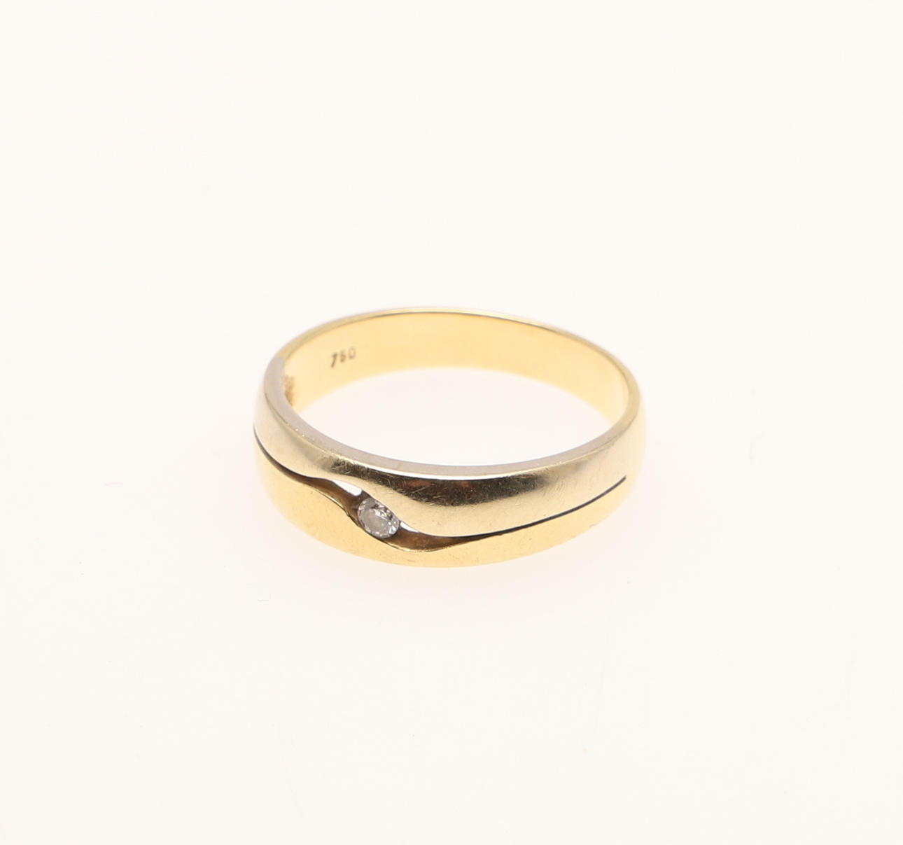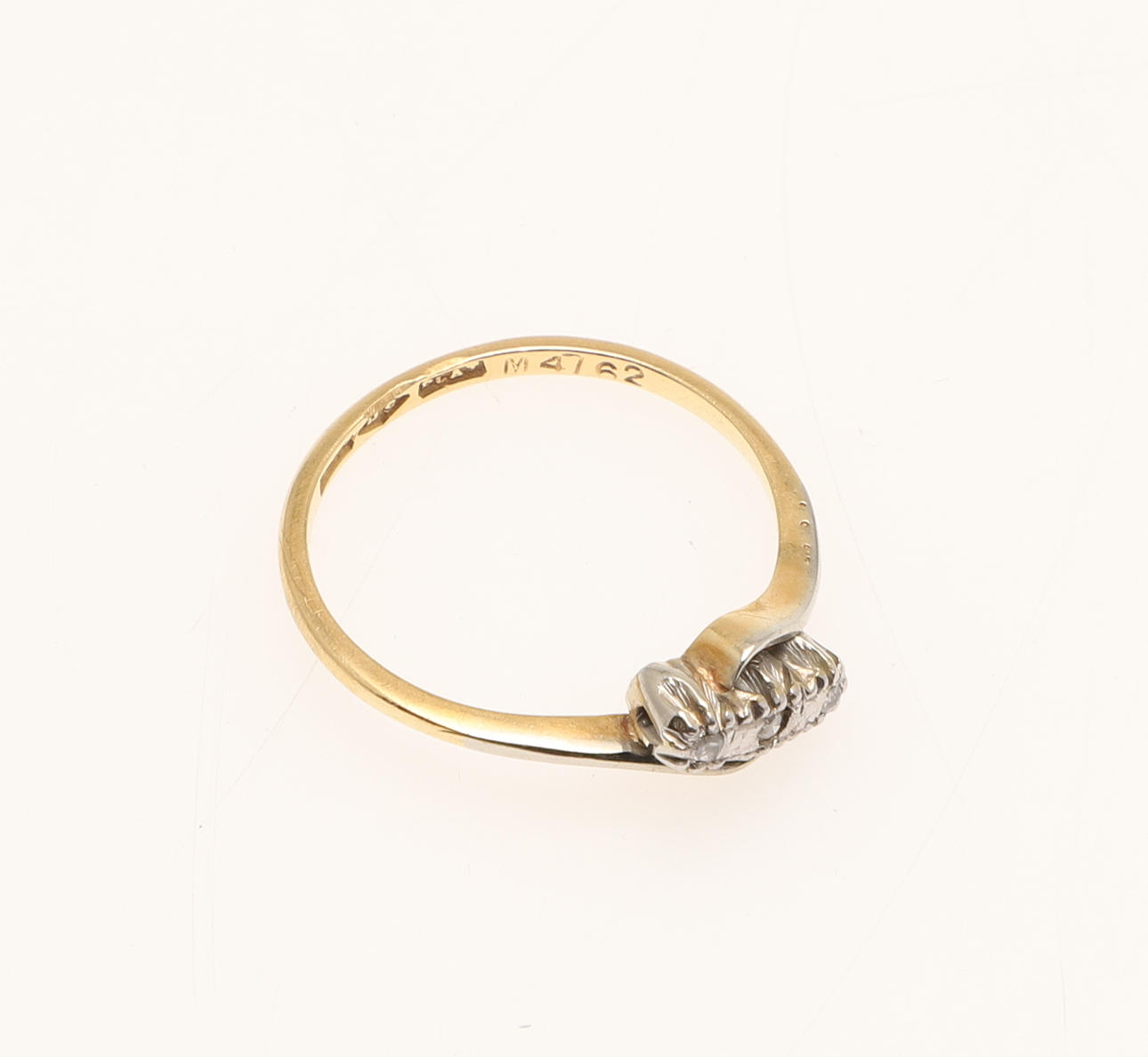 Crossover-rengas, 18 ct kultaa ja timanttia, kolme kiveä, koko M, yhdessä modernin sormuksen kanssa, jossa yksi timantti koko O, yhteensä 18ct 6.3g.