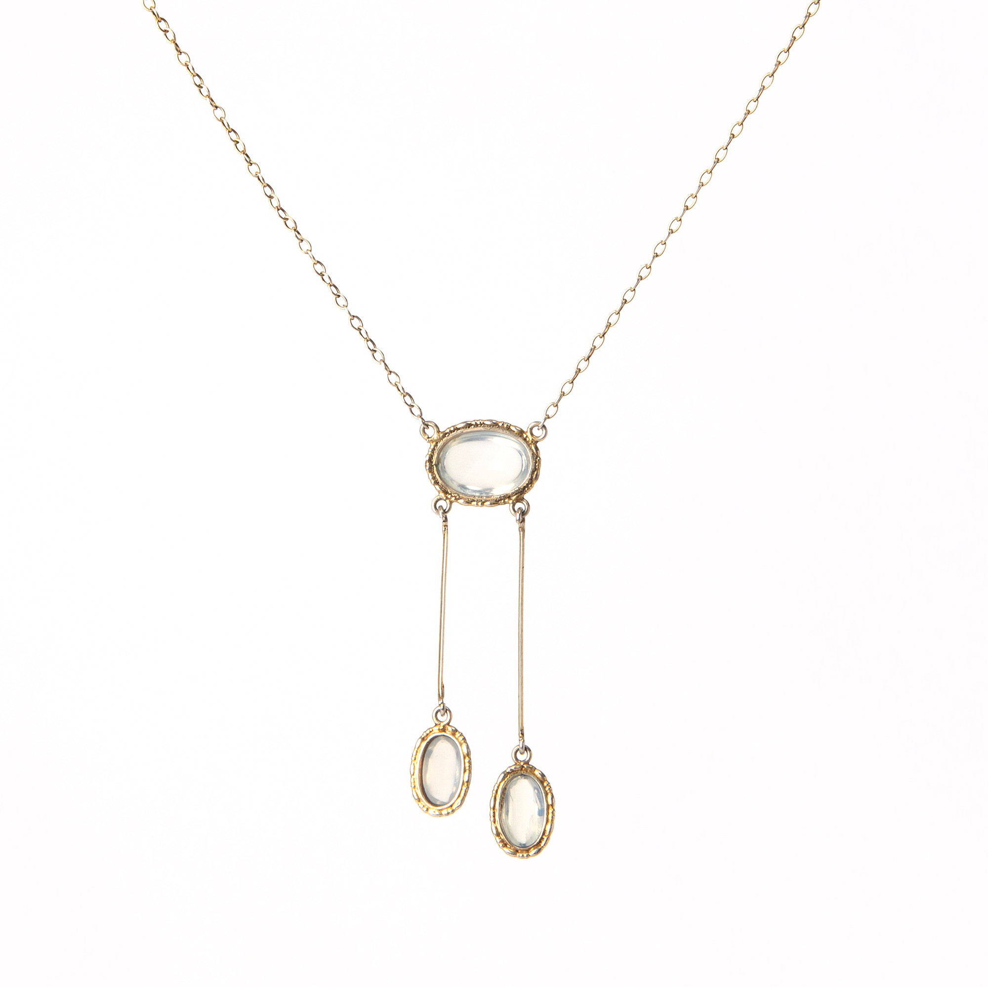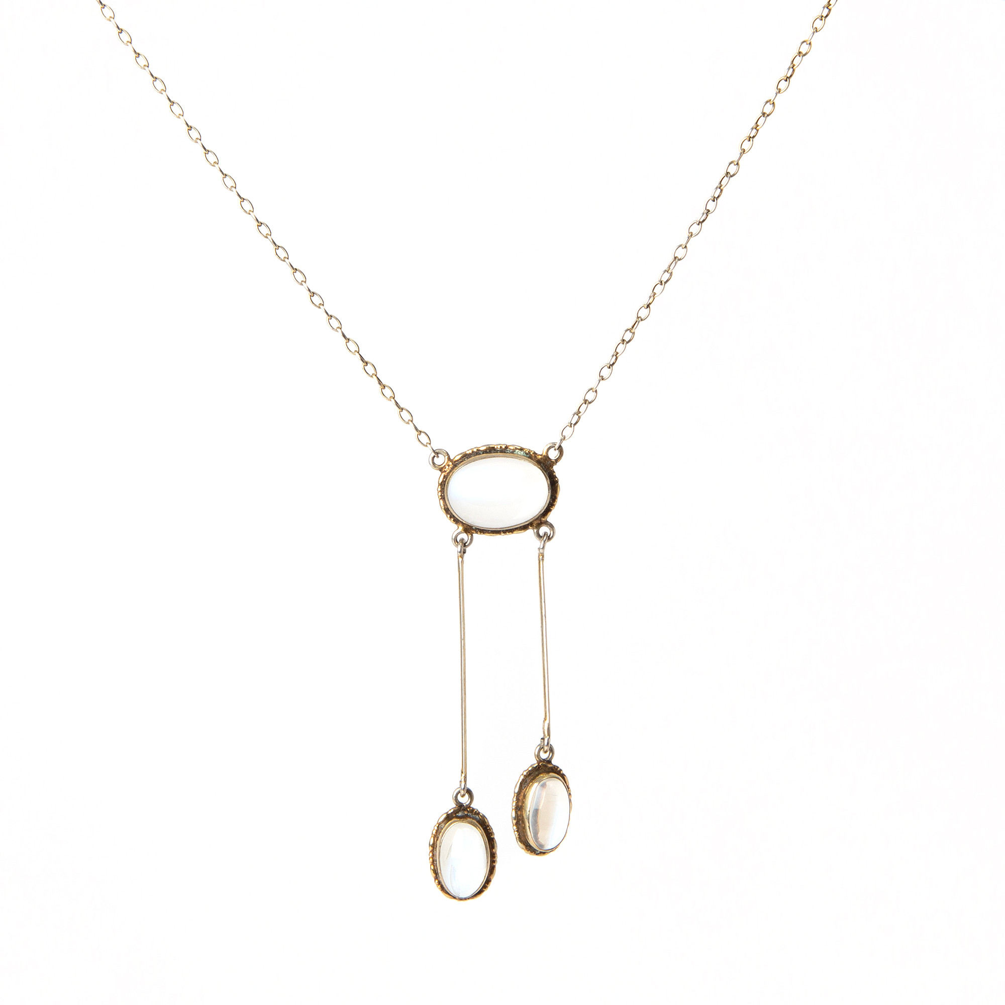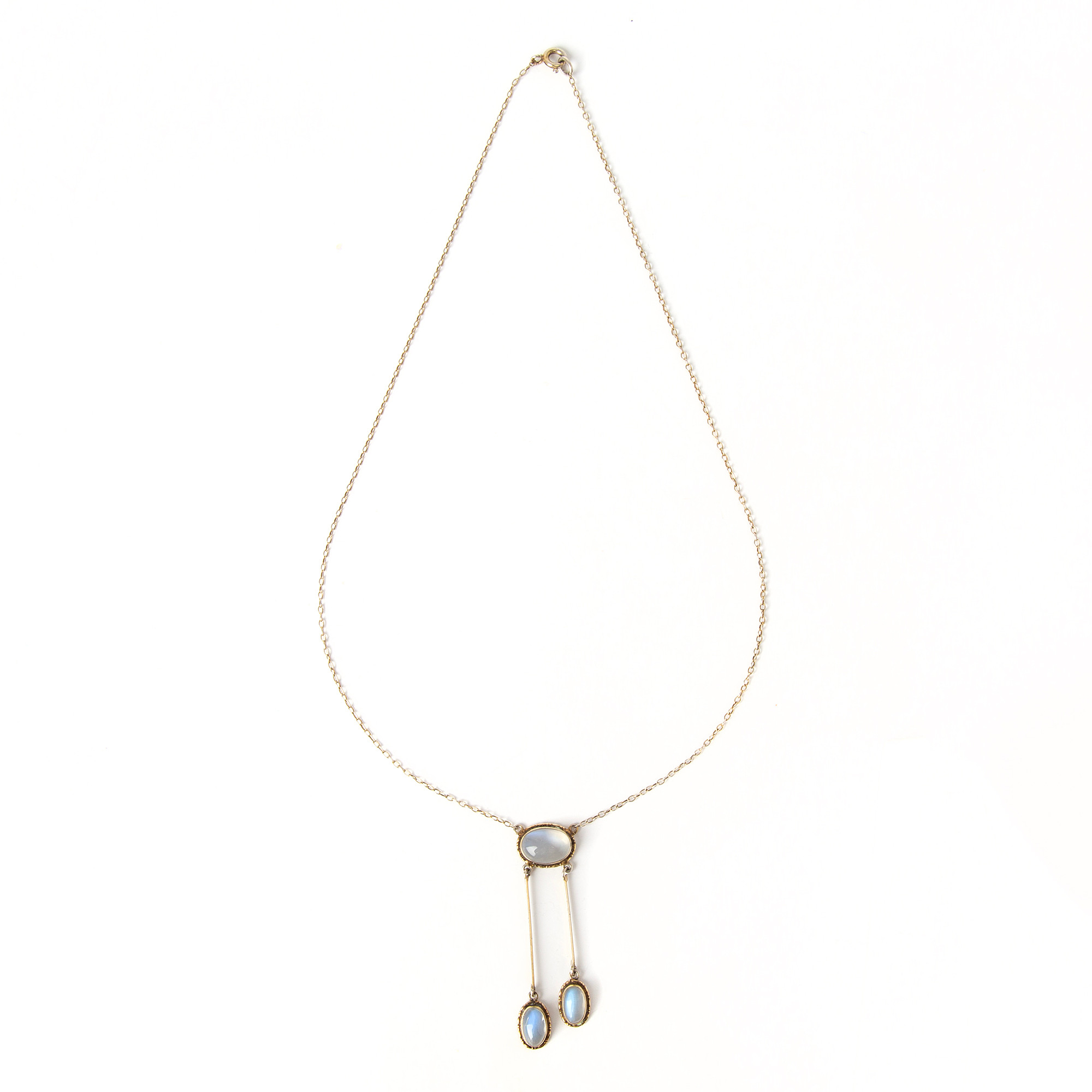 4352010. KAULAKORU, hopeaa, cabochonslipade kuukiviä.