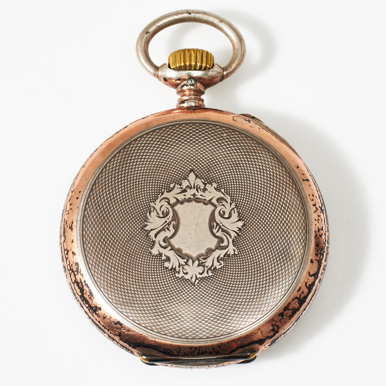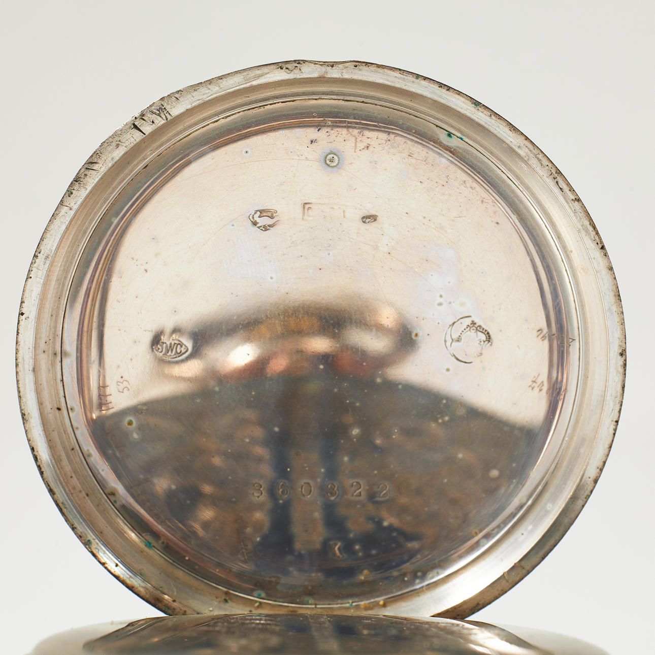 Valkoinen emaloitu kellotaulu, kotelo nro. 360322, halkaisija 51 mm.